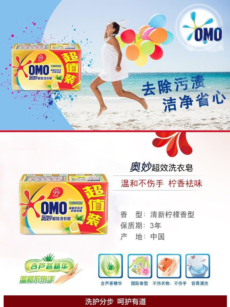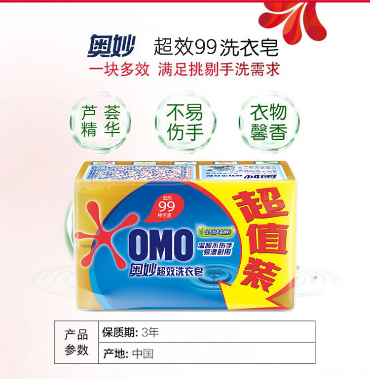 奥妙超效洗衣皂206gX2块X5组清新去渍温和不伤手馨香衣物易漂洗 芦荟206*2块X5组
