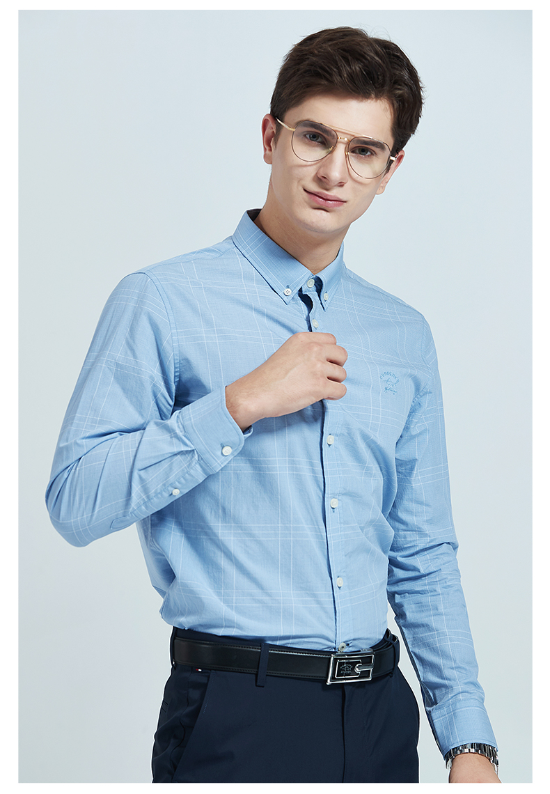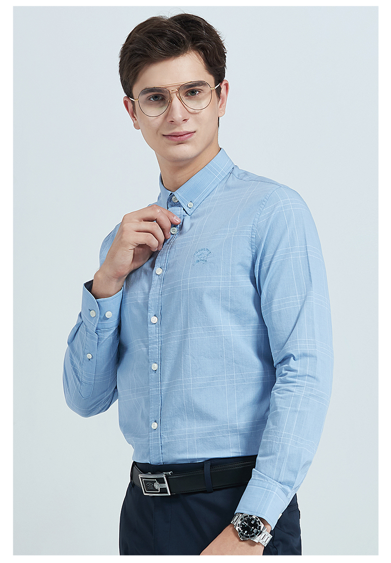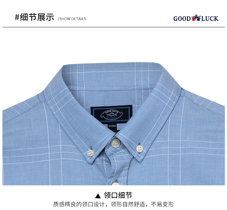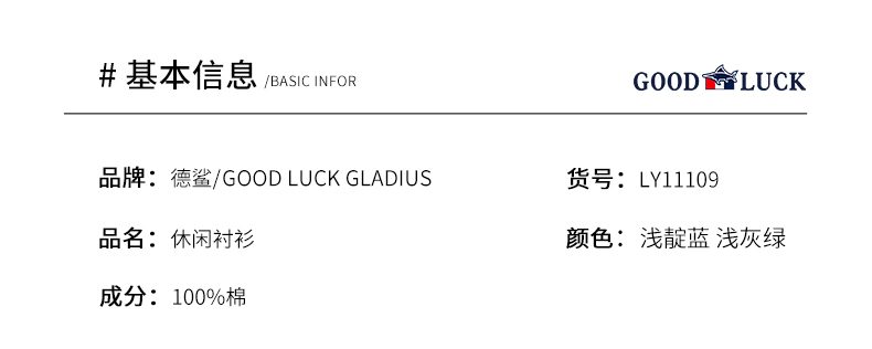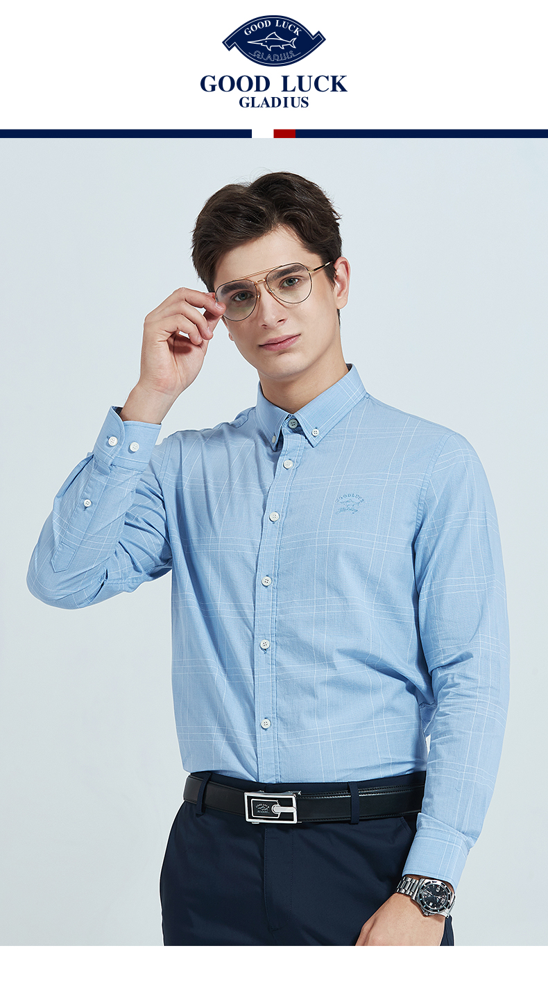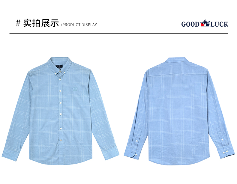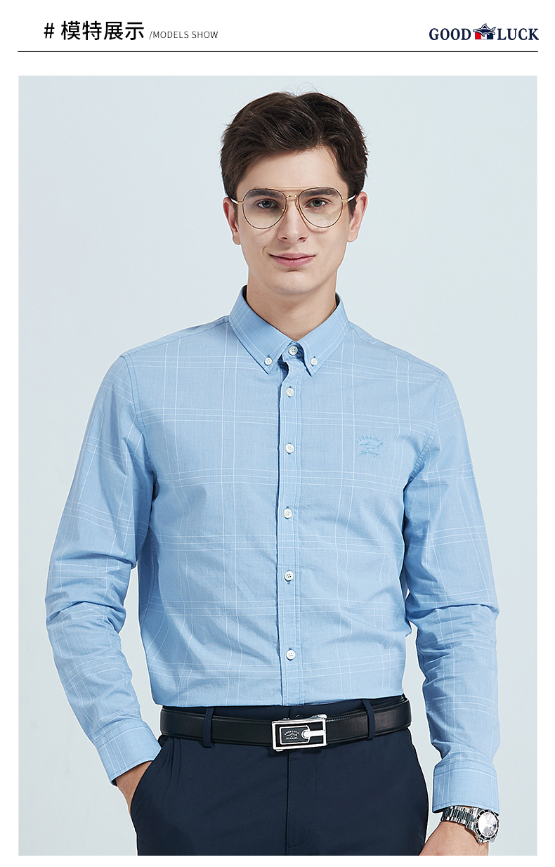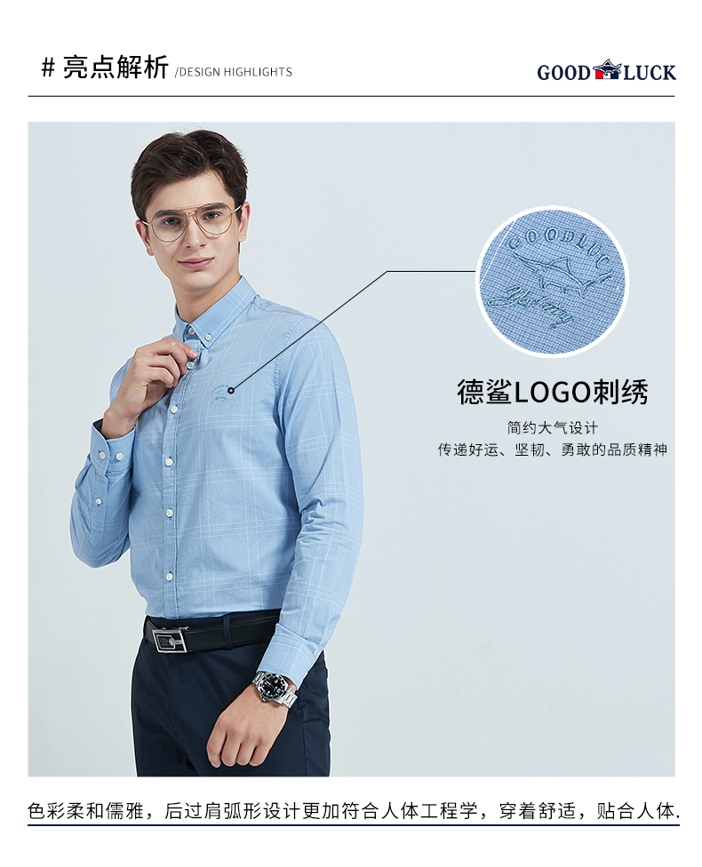 GOOD LUCK/德鲨100%棉两色可选清新舒适休闲商务长袖衬衫LY11109-836