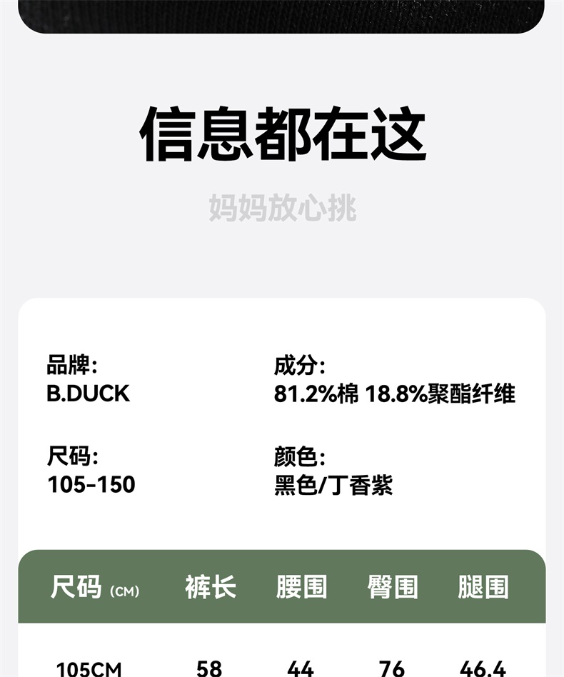 B.Duck小黄鸭童装春秋针织裤105-150 BF3563091