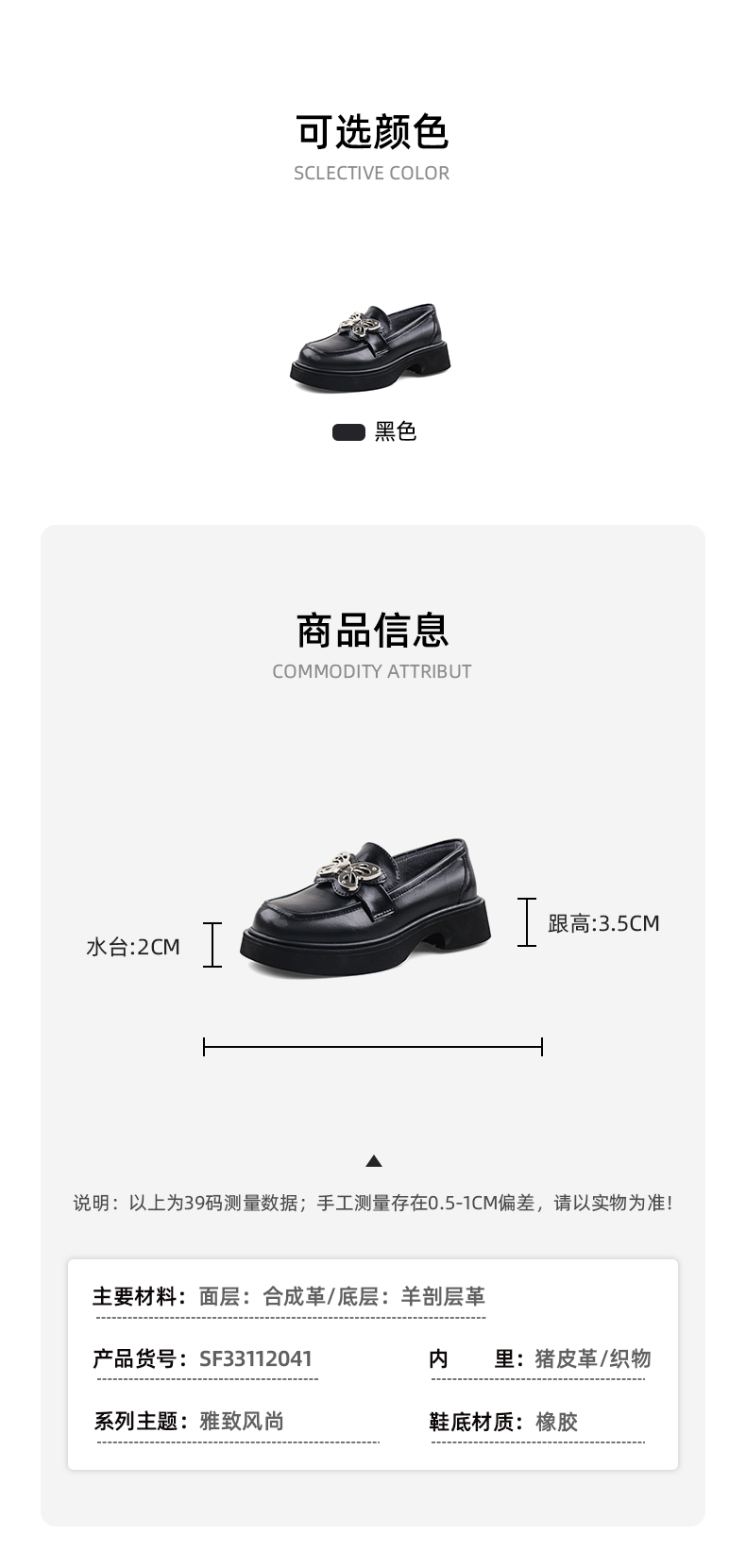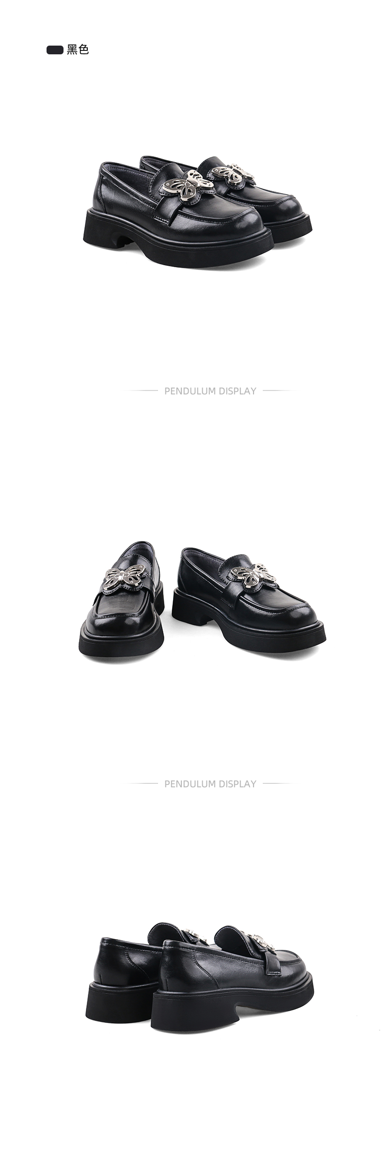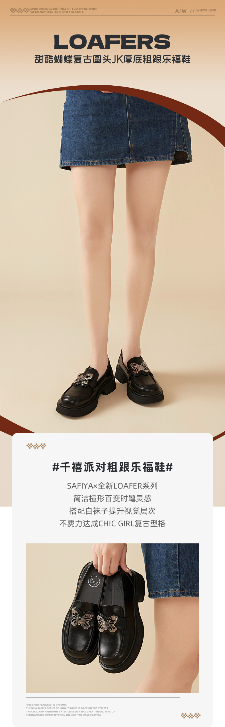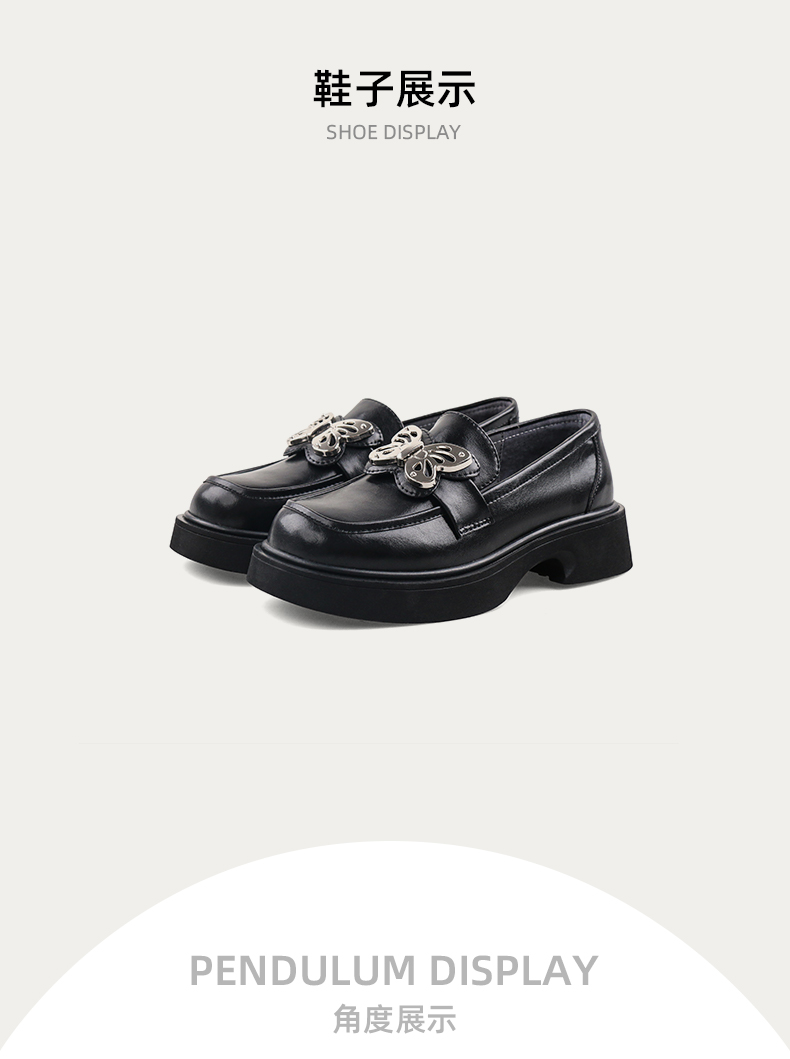 Safiya/索菲娅2023秋冬新品 甜酷蝴蝶复古圆头JK厚底粗跟乐福鞋SF33112041