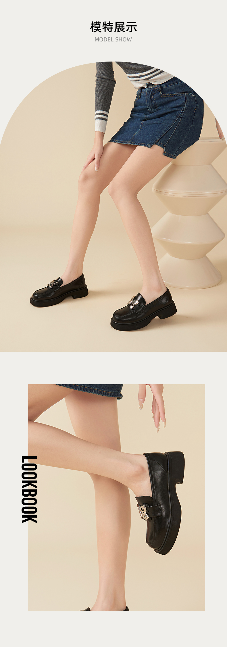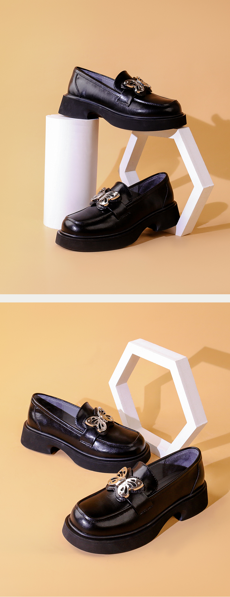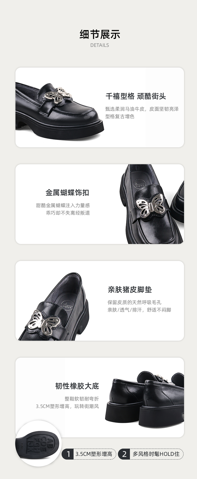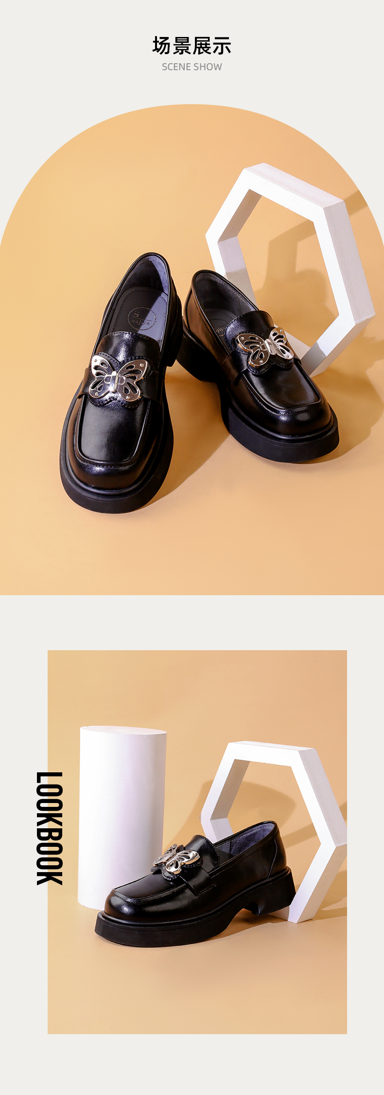 Safiya/索菲娅2023秋冬新品 甜酷蝴蝶复古圆头JK厚底粗跟乐福鞋SF33112041
