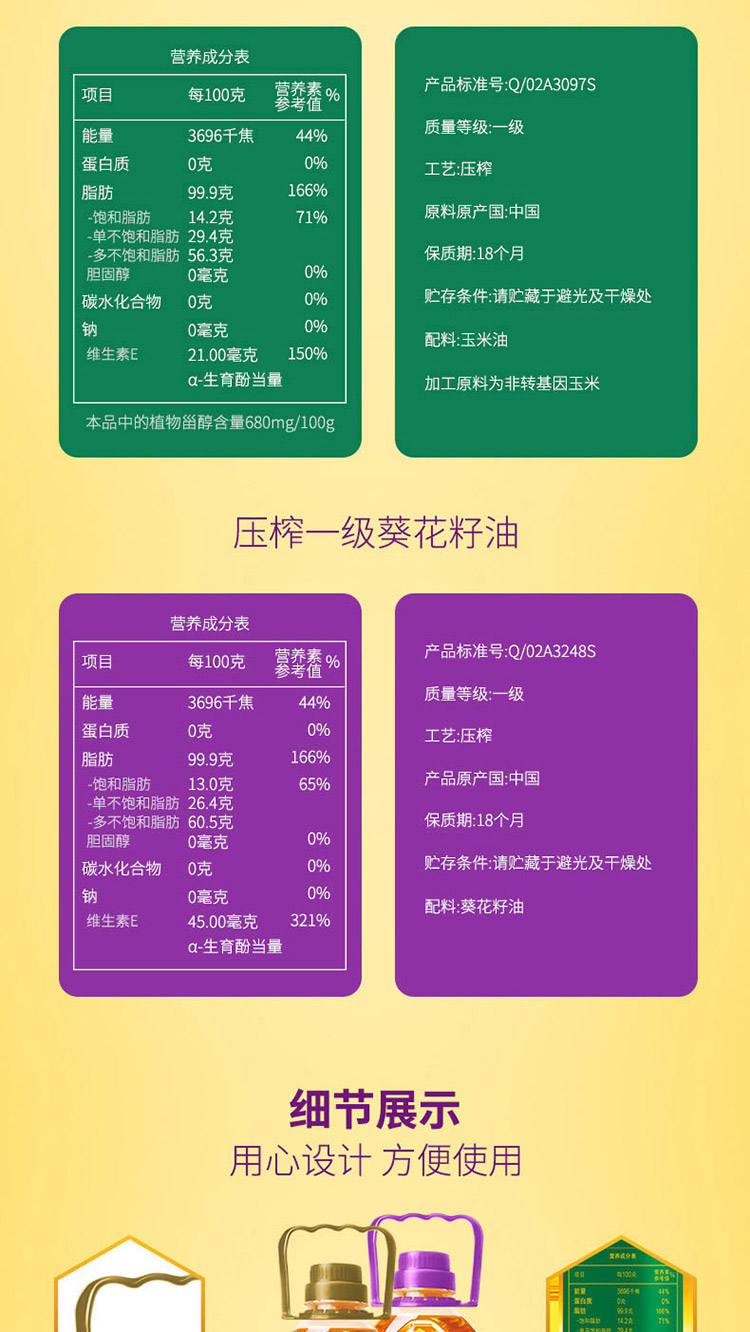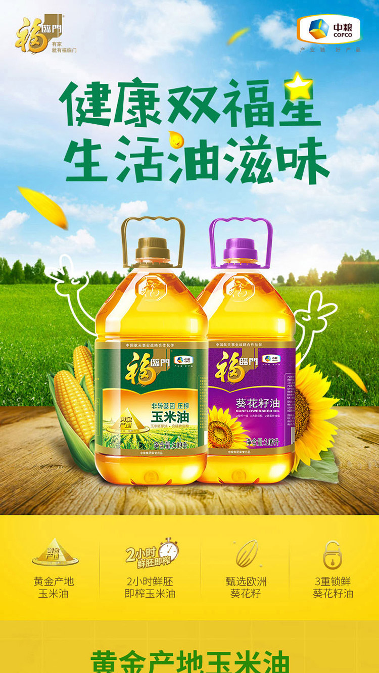 福临门 食用油 全程可追溯 葵花籽油+玉米油品质套装3.09L*2 节日礼盒 送礼必备 京东JOY联名款