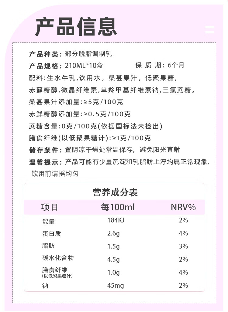 【分仓直发包邮】左江桑葚水牛奶210ml*10盒/箱