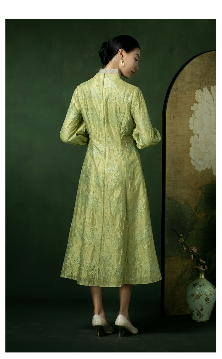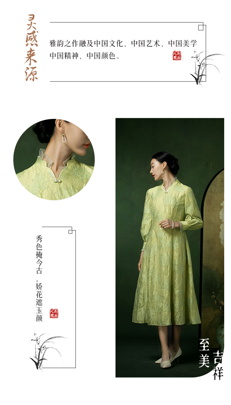 吉祥衣家新中式国风春夏新款高端气质显瘦修身女装荣曜秋菊连衣裙