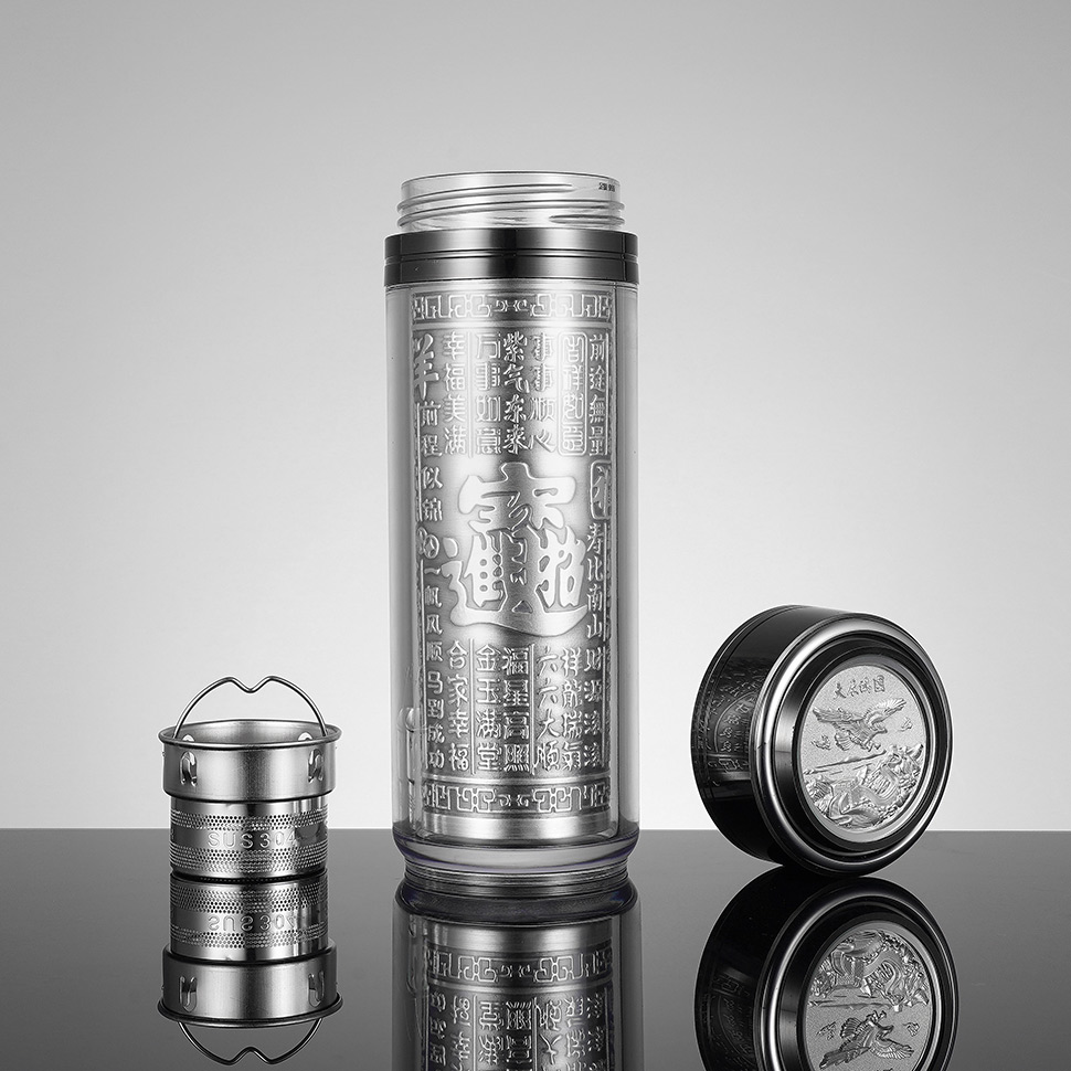 子佩集S999银旋转浮雕杯摆件【DLBJB024】纯银内胆-招财进宝泡茶杯2101