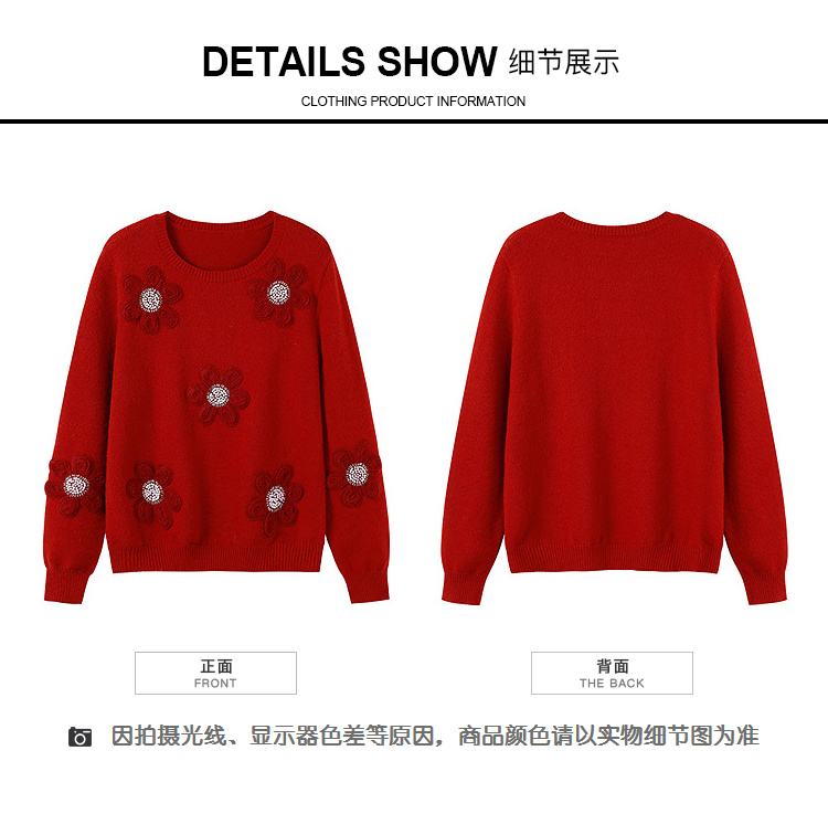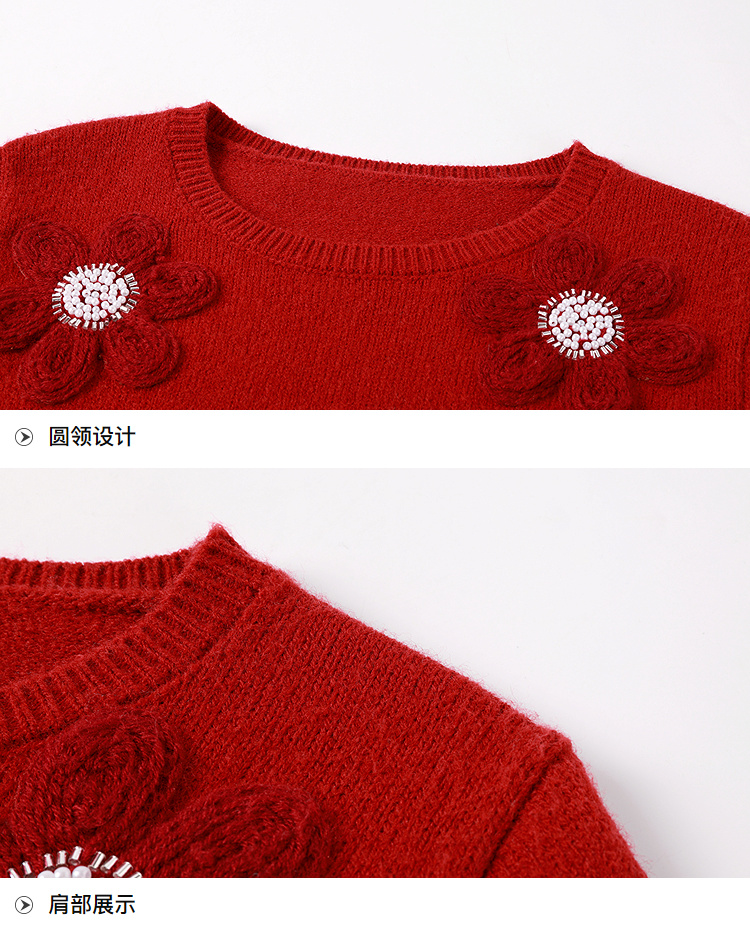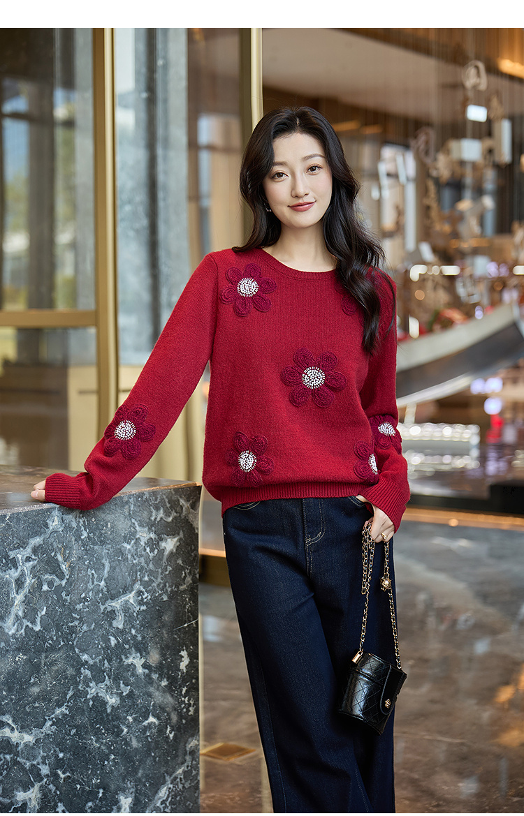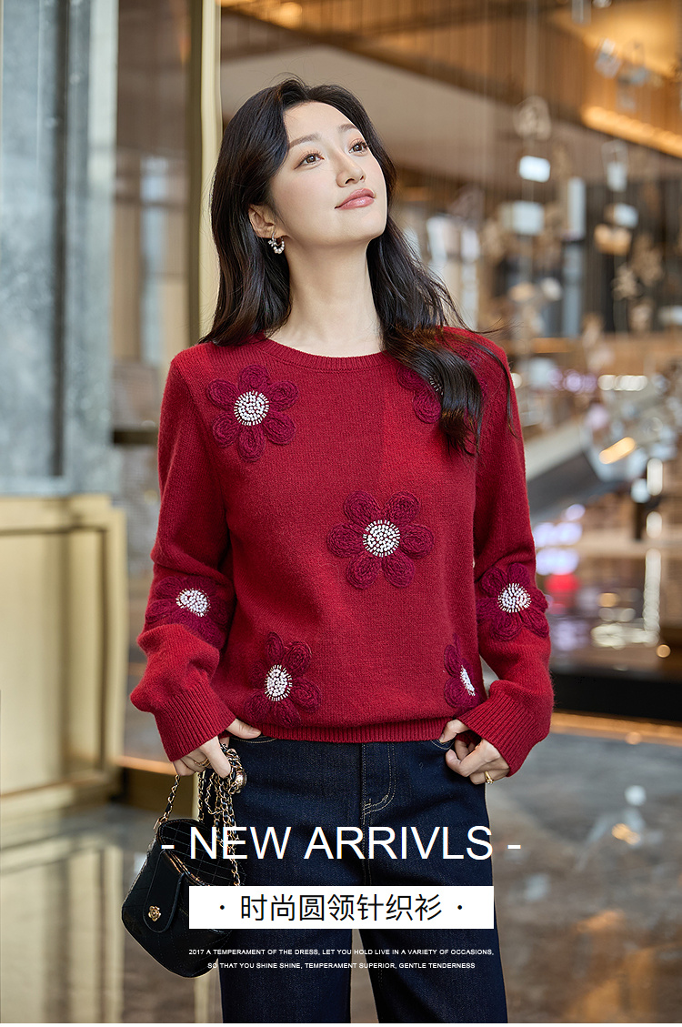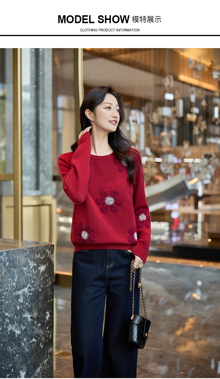奢姿大码女装2025冬季胖妹妹时尚花朵装饰针织衫气质甜美显瘦上衣9854635277