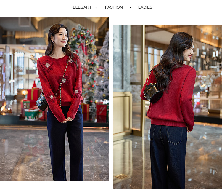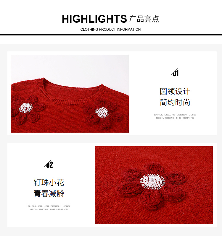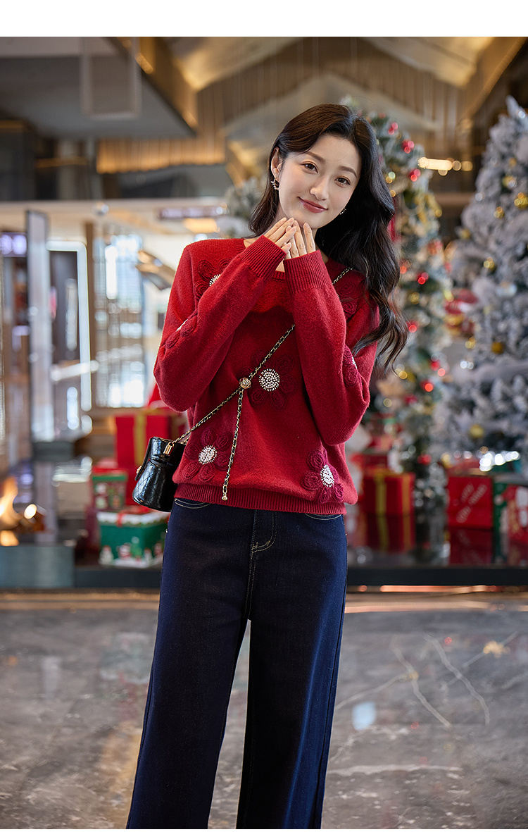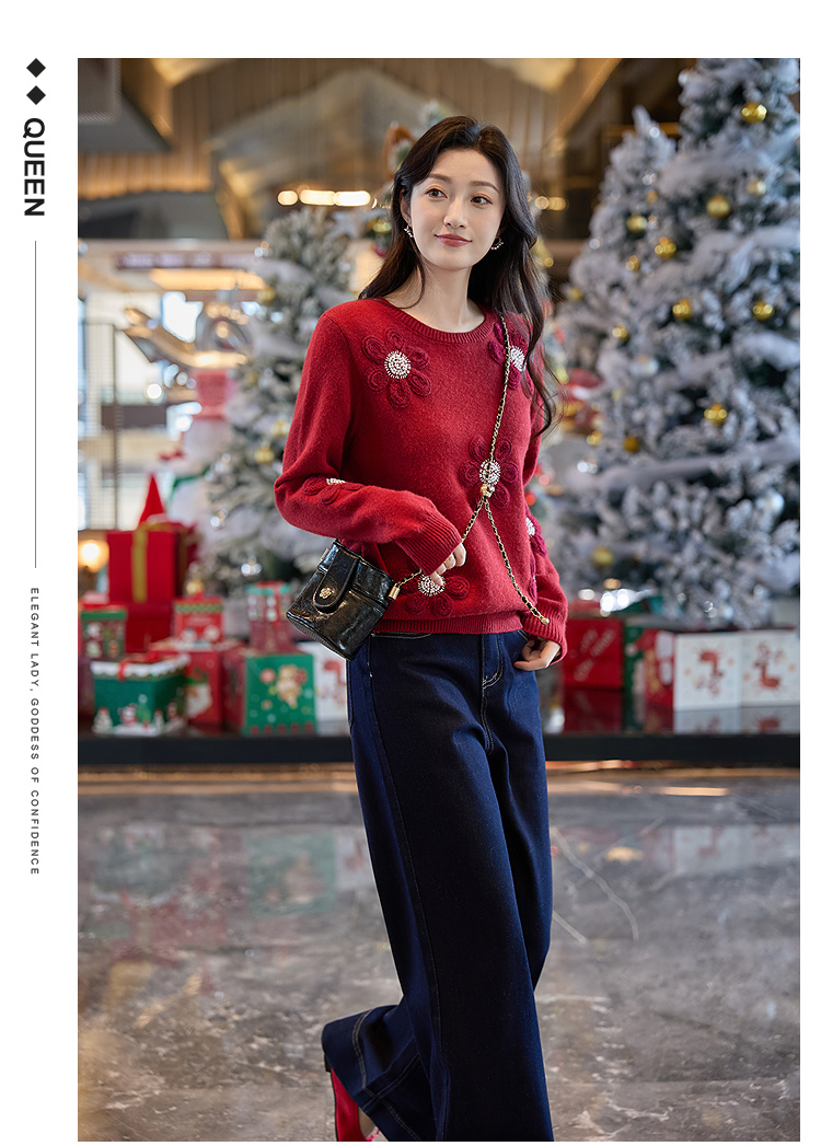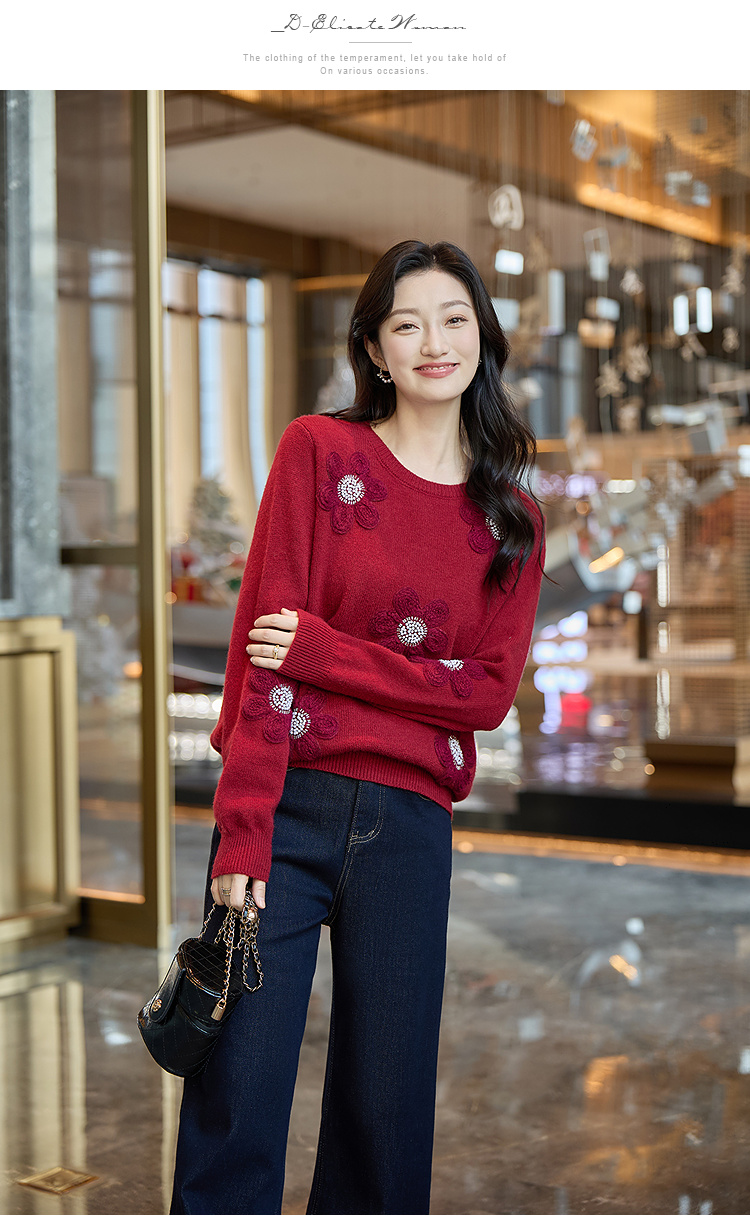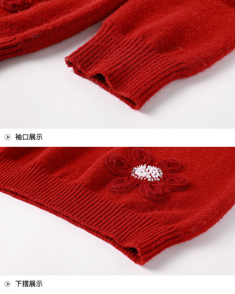 奢姿大码女装2025冬季胖妹妹时尚花朵装饰针织衫气质甜美显瘦上衣9854635277
