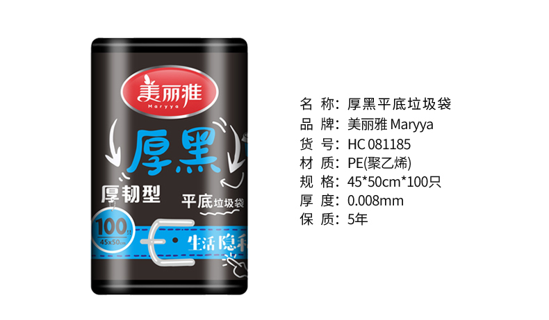 美丽雅黑色加厚大号平底垃圾袋45cm*50cm