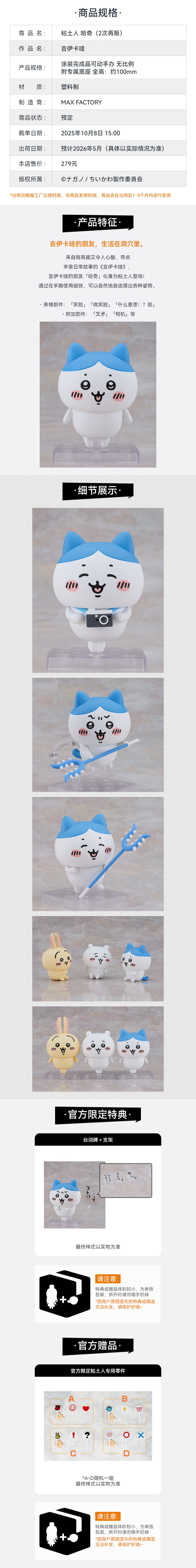 【GSC预售定金】粘土人 哈奇 吉伊卡哇 附官方限定特典 手办模玩
