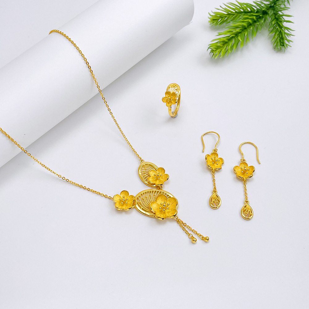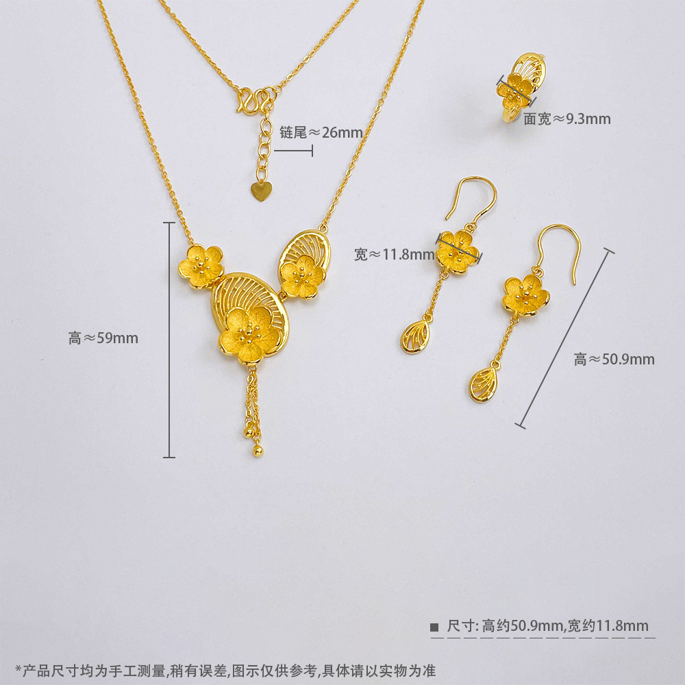 【限时克减150元】足金999.9 #套装 #招桃花 #婚庆 【精品】黄金豪华镂空桃花项链一套装婚礼三金首饰(一套3件)(N100TX00015)(预售产品下单后不退款不退货不换货不补差价)