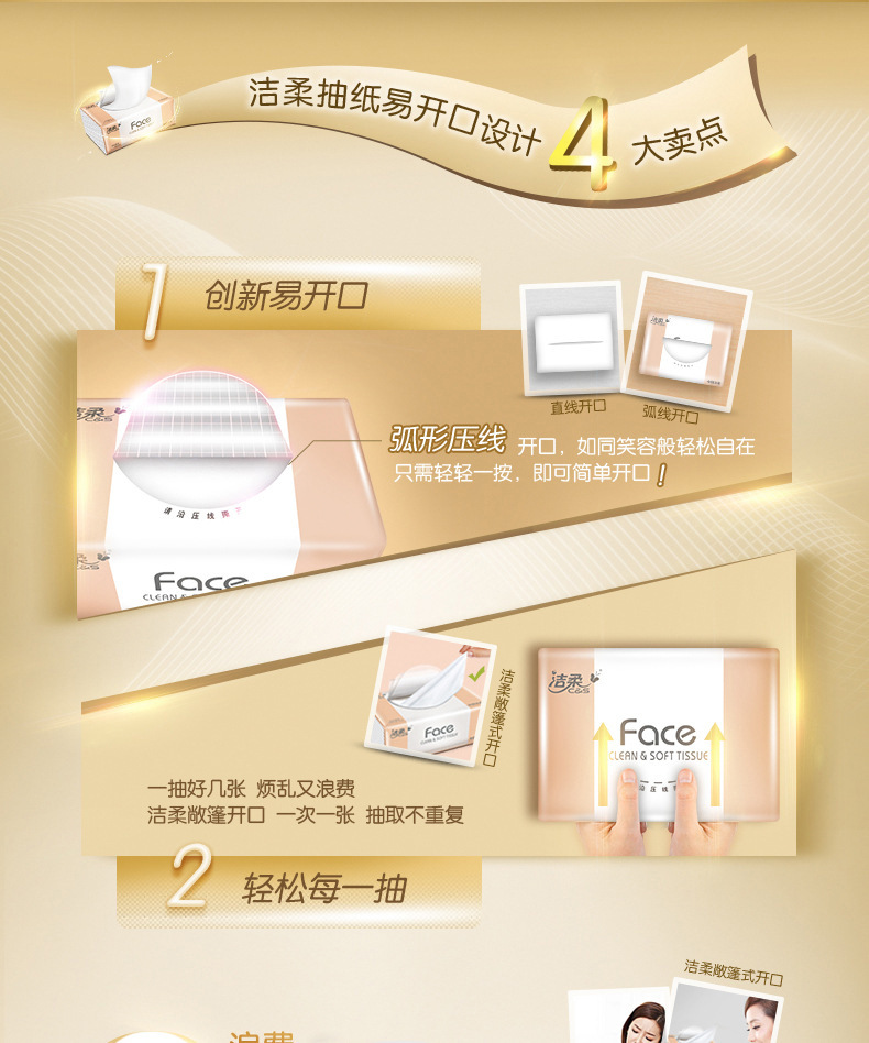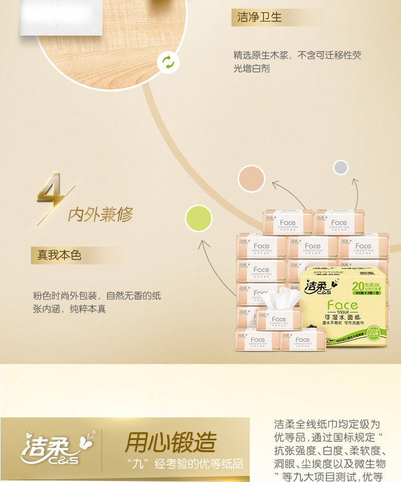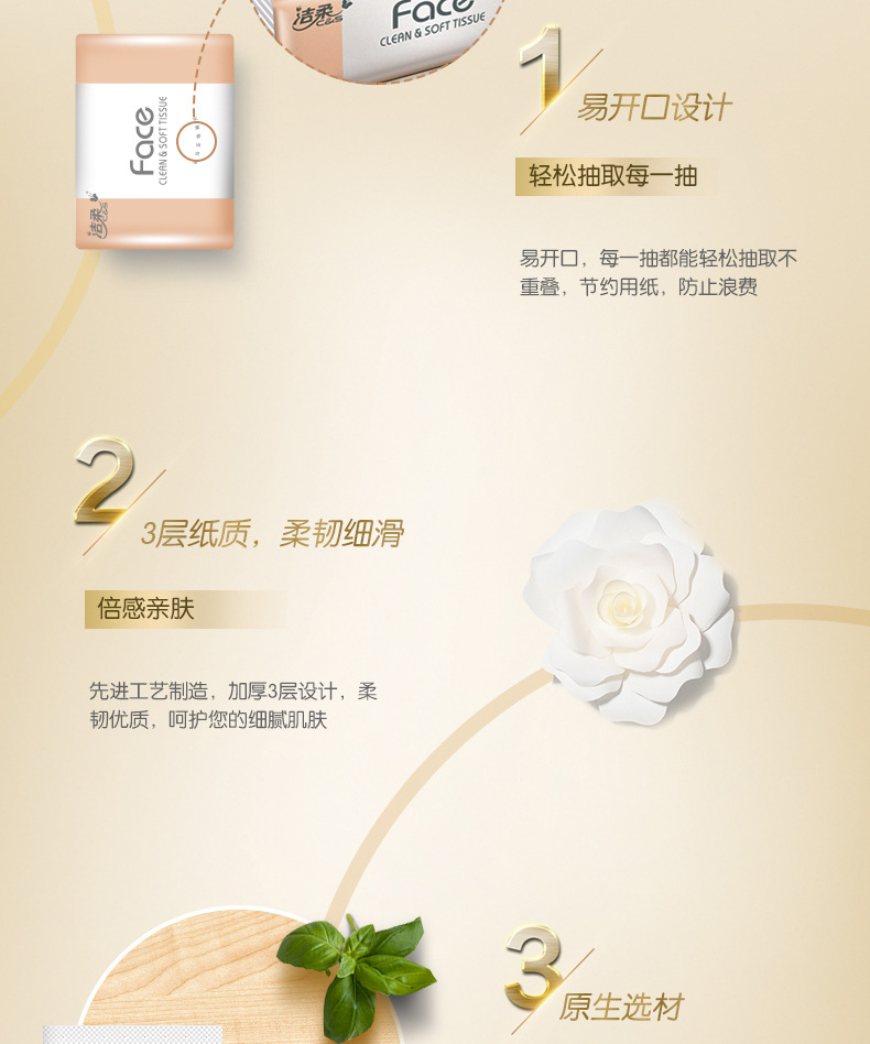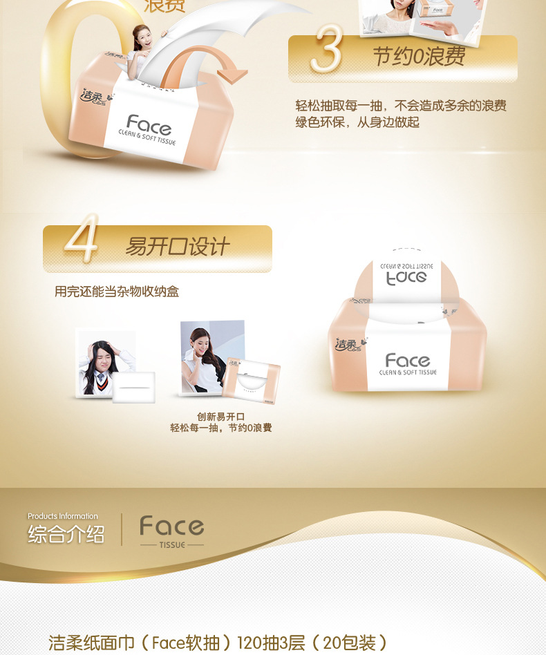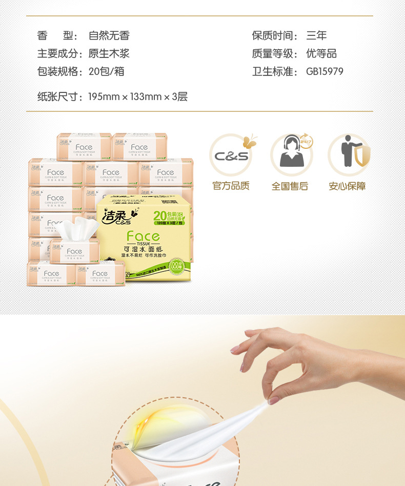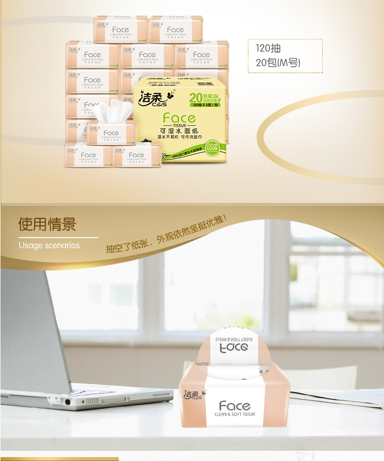 【洁柔Face抽纸】3层120抽20包/箱 可湿水面巾纸巾抽纸居家日用清洁工具餐巾纸