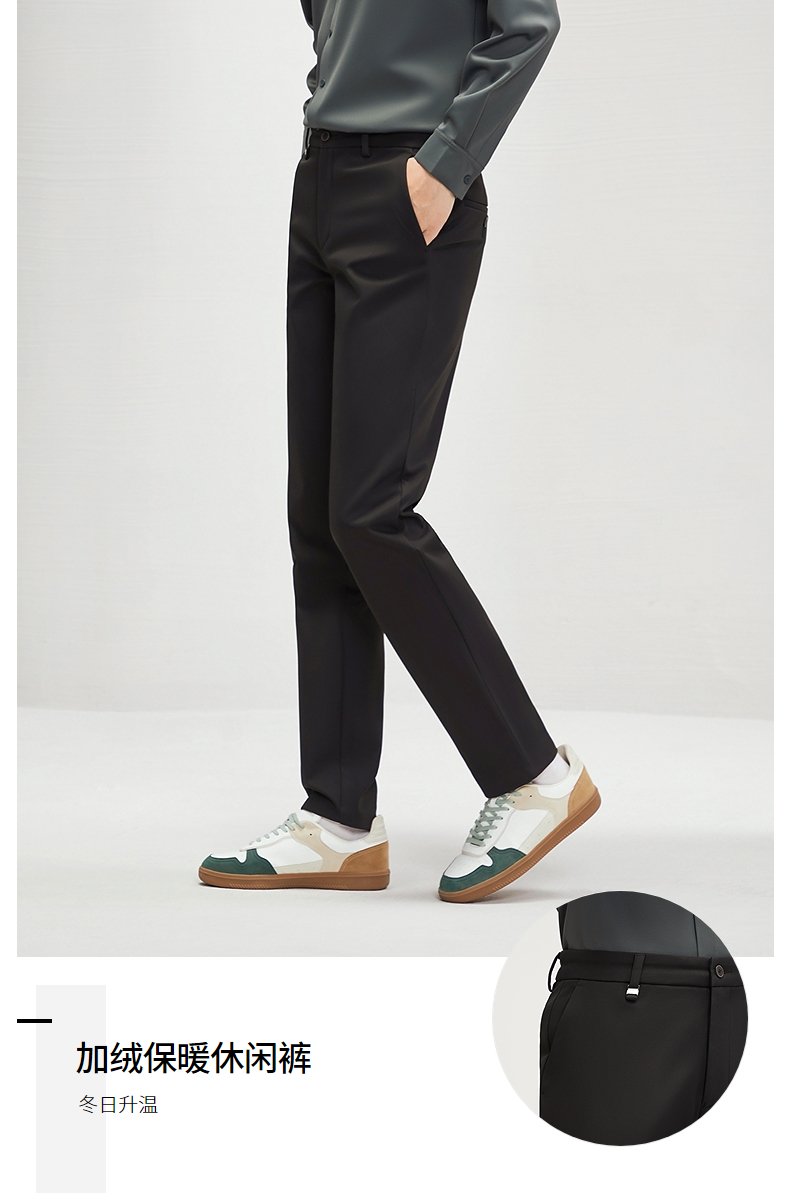 【复合绒】柒牌男装休闲裤秋冬新款商务修身舒适保暖男士直筒长裤 127H72370