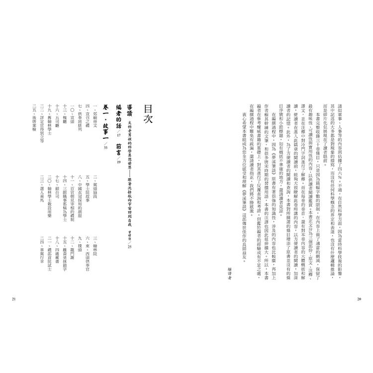 其實,沈括是生於一千年前的政治家、科學家。他不但參與王安石變法,也在農耕、疏濬、天文、工程學上有諸多實務經驗與貢獻。《夢溪筆談》是他晚年總結自己一生所學、研究、心得的集大成,被《中國科學技術史》作者李約瑟(Noel Joseph Terence Montgomery Needham)盛讚是「中國整部古代科學史上的座標。」