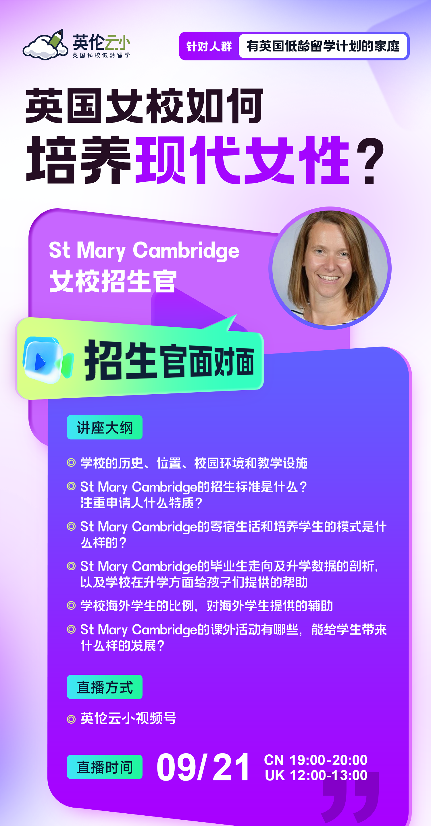 【9.21招生官面对面】英国女校如何培养现代女性? St Mary Cambridge 女校招生官面对面 商品缩略图0