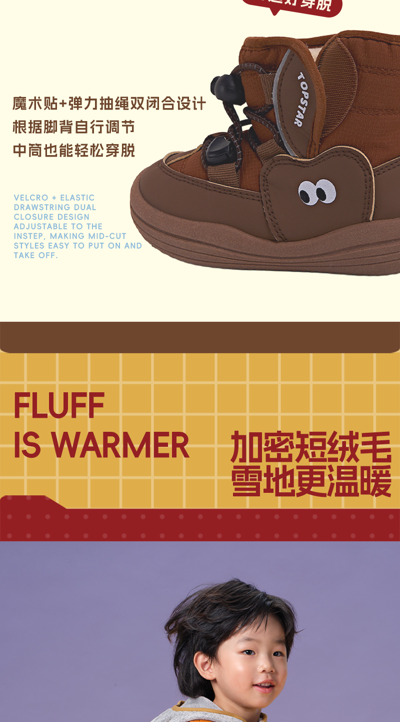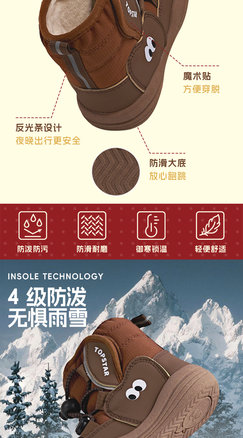 【25冬上新】TOPSTAR儿童雪地靴冬季保暖加绒加厚女童防滑男童软底棉靴3013
