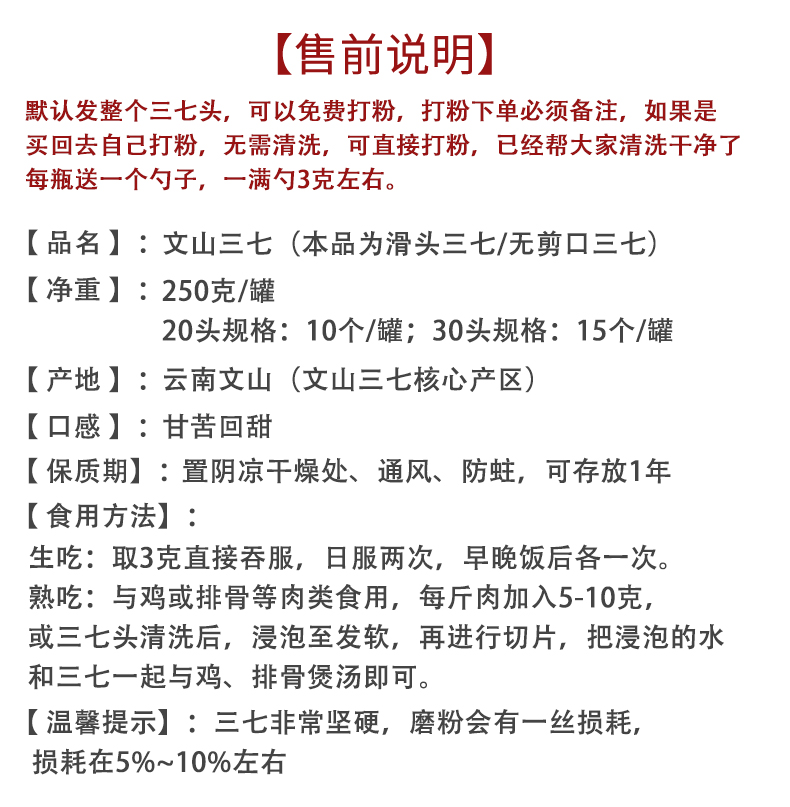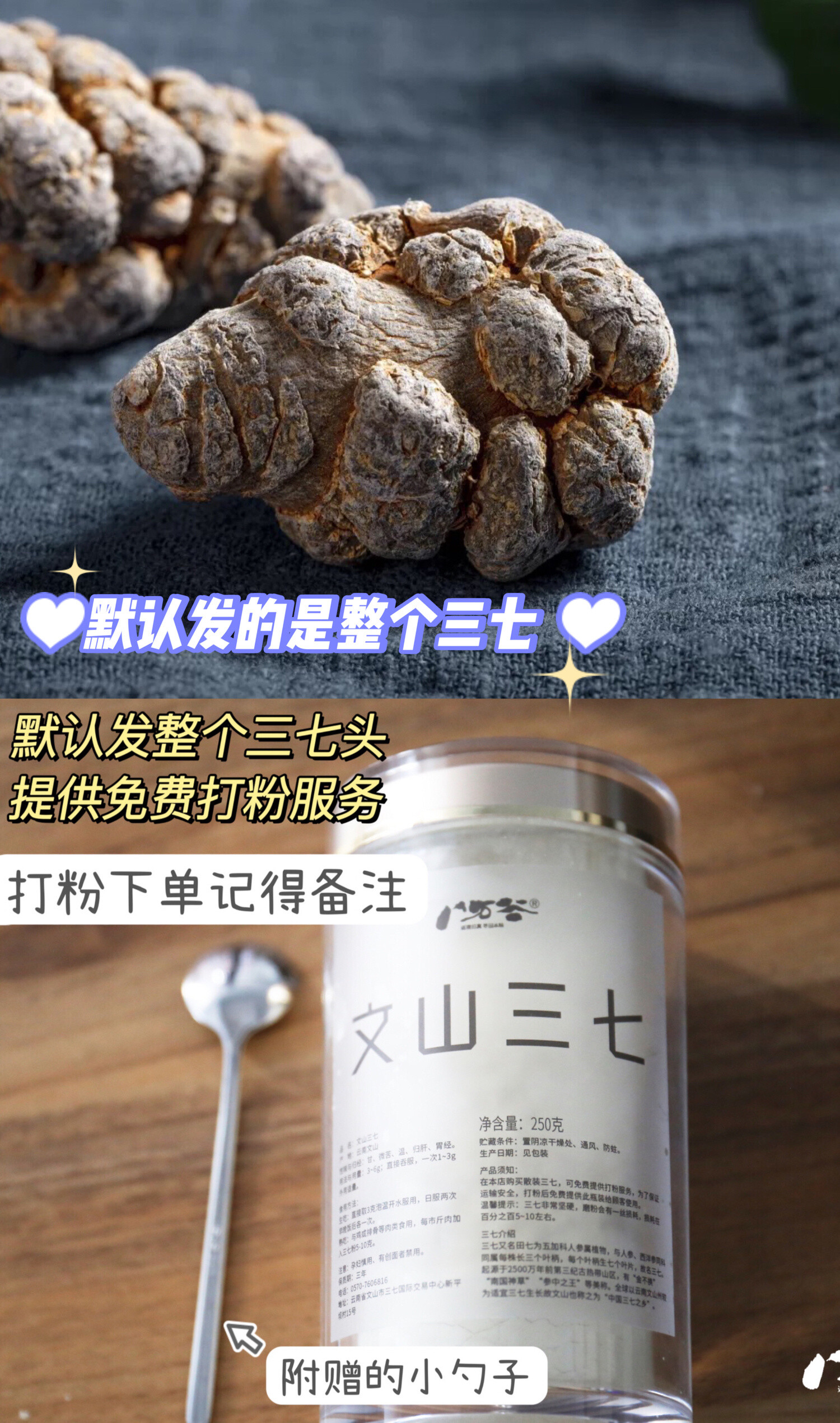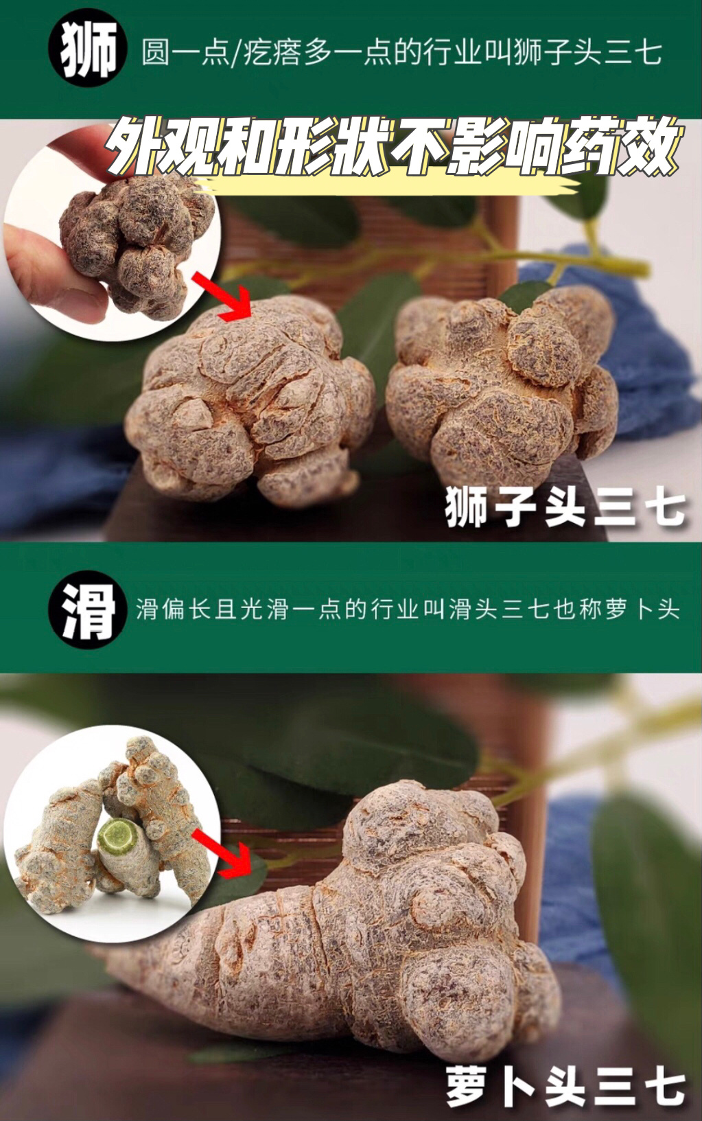 热卖【云南文山春三七】打粉需备注 3年的春三七,仿野生种植,核心原产地直供,不抛光不打蜡本色水洗,无剪口,无泥土,饱满墨绿色肉层