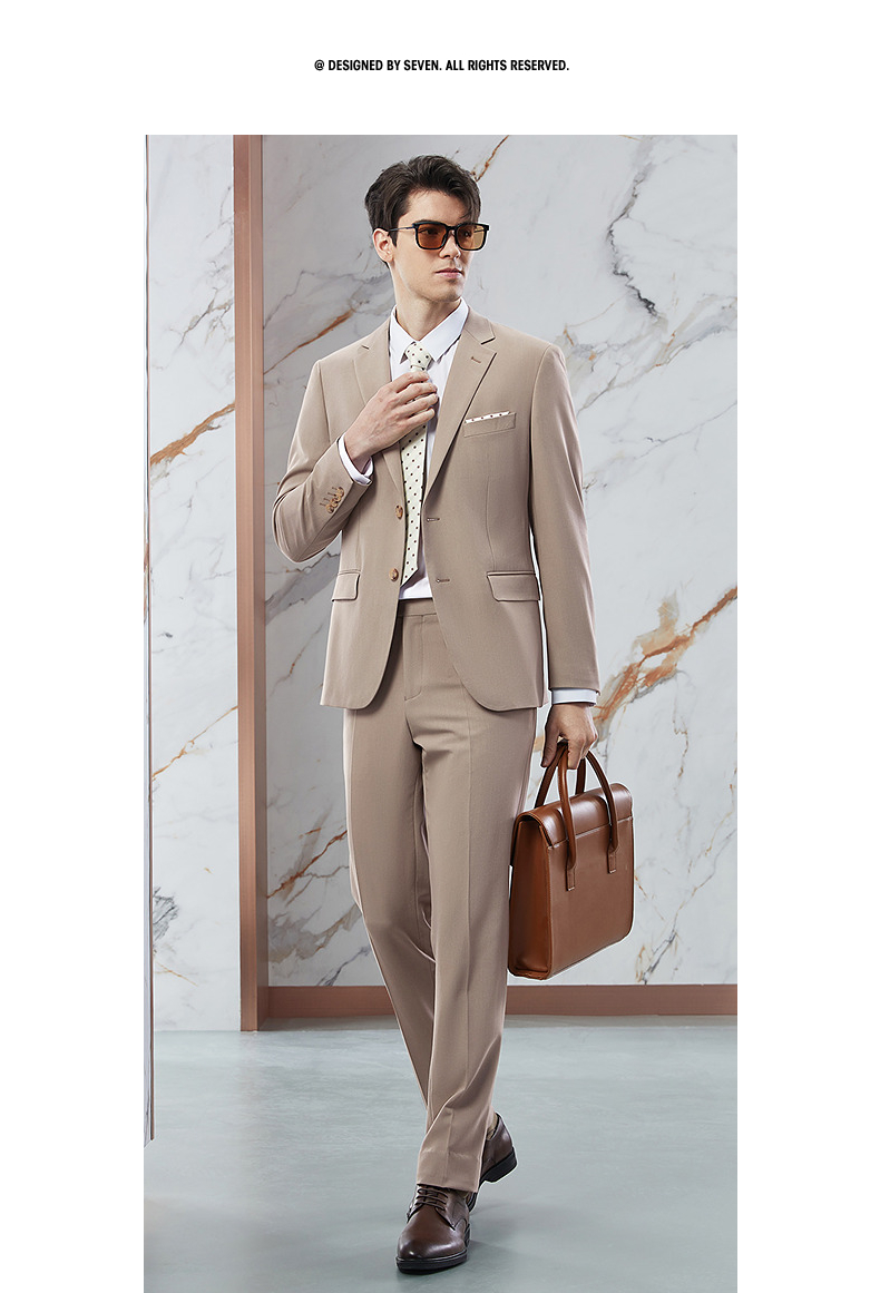 【含莫代尔】柒牌西服套装男2024春季新款商务正装面试平驳领西装 126C70600