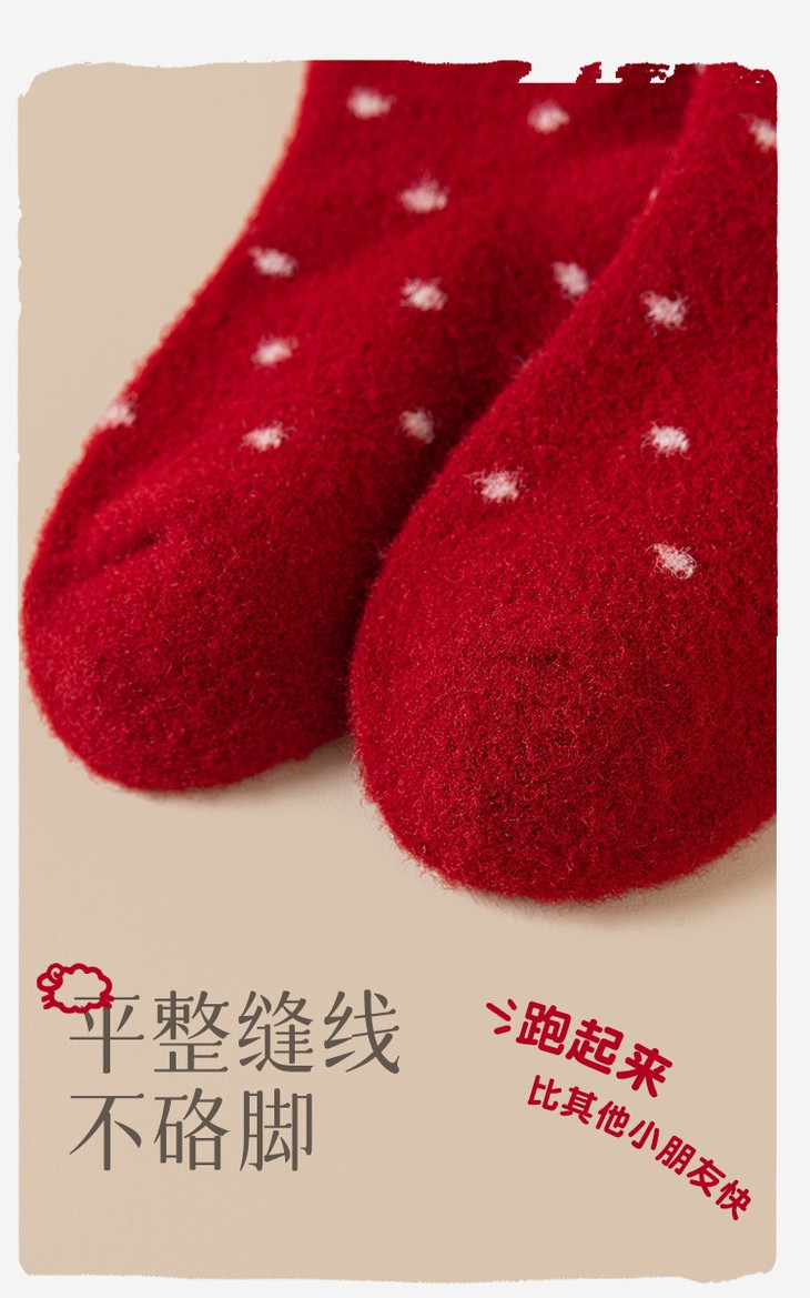 好喜气!儿童澳绒圣诞新年袜,红袜上有爱心魔法,就像把满满的爱意都融入其中耶~