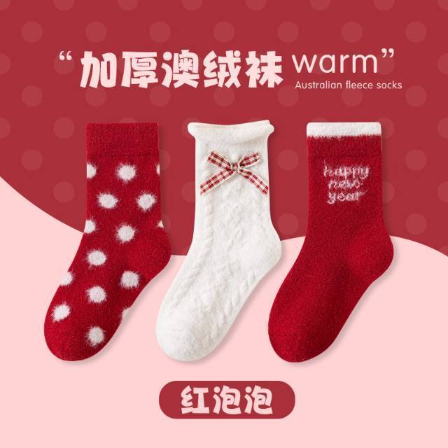 儿童澳绒圣诞新年中筒袜