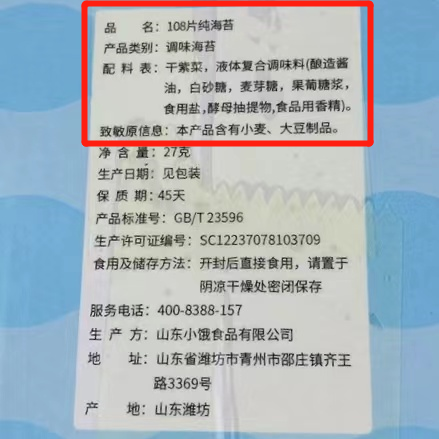 2:108片完整海苔,精工切割,片片完整,片片满足!更健康更营养