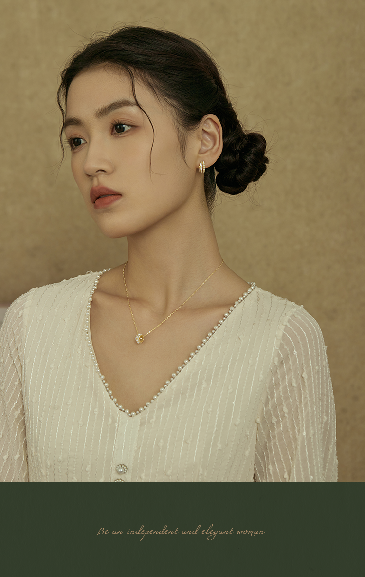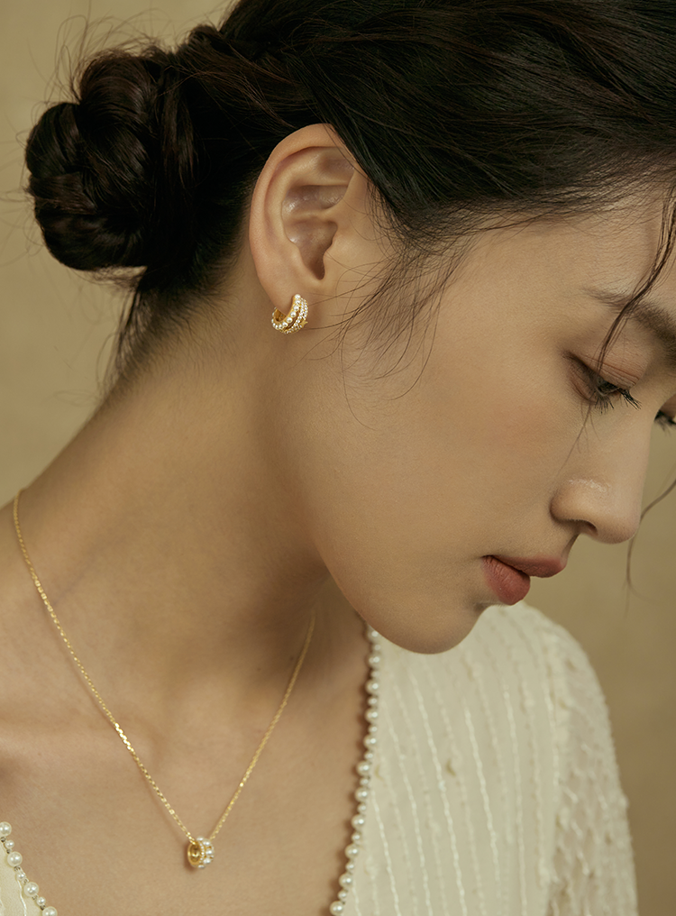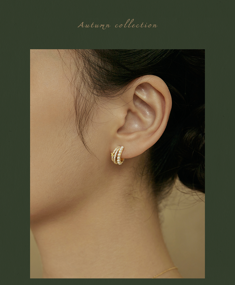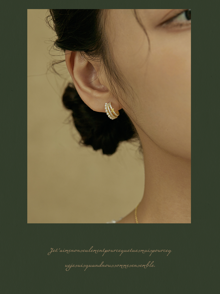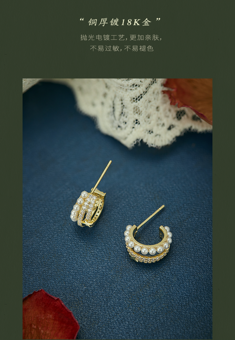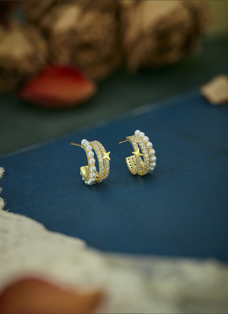 Oflye潮流饰品 S925银针法式金色半圈锆石星星耳钉人造珍珠多层耳环小众设计感精致气质耳饰配饰