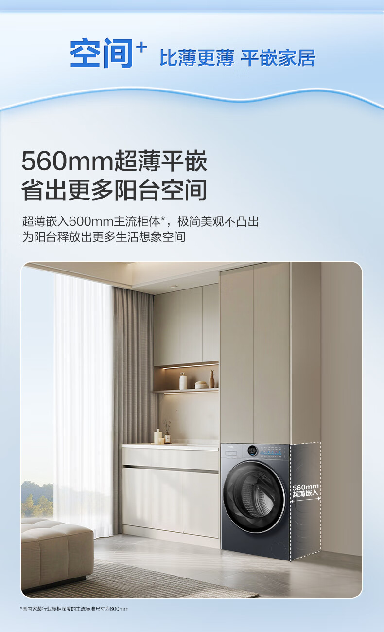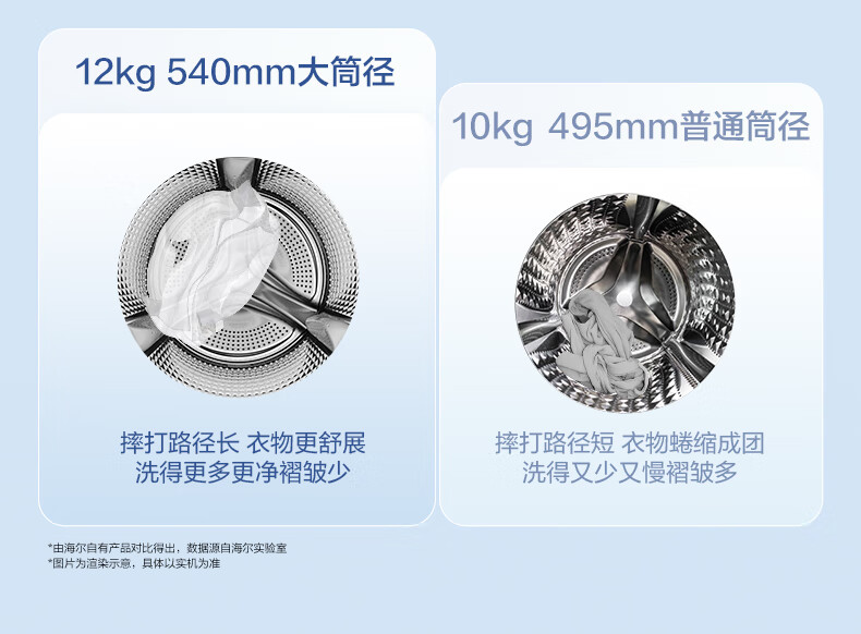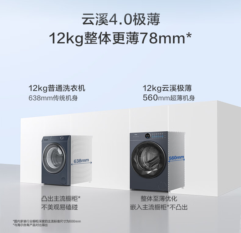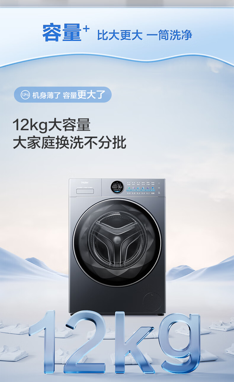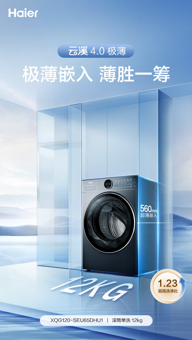 海尔(Haier)云溪4.0极薄 全自动滚筒洗衣机 12KG大容量 超薄大筒径 XQG120-SEU65DHU1