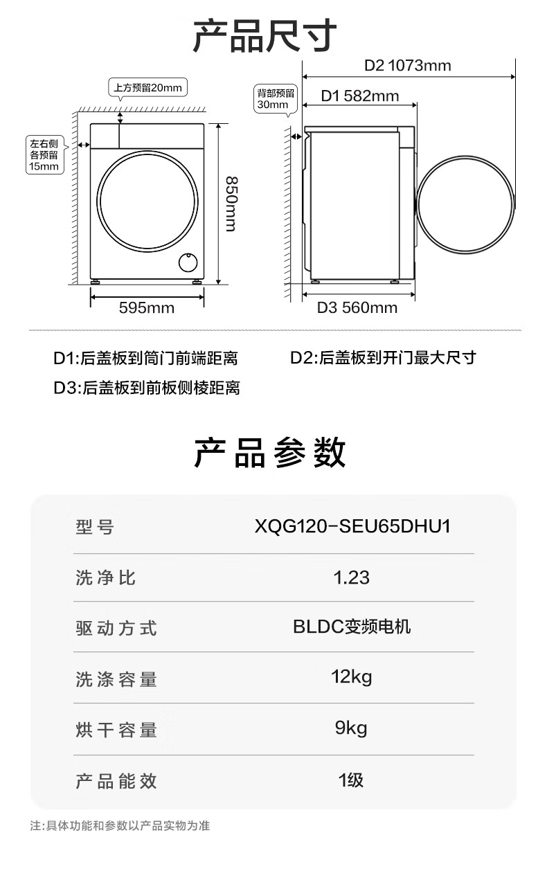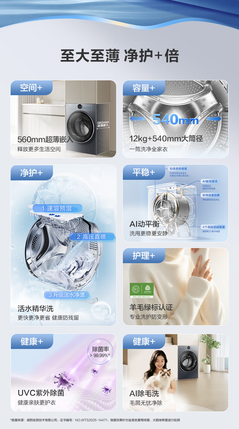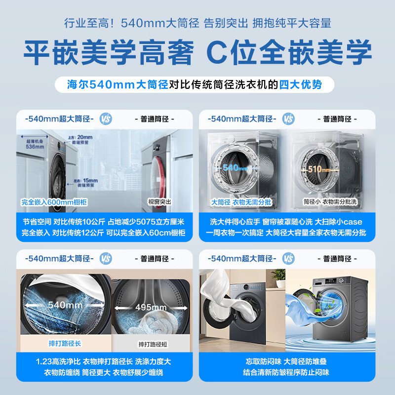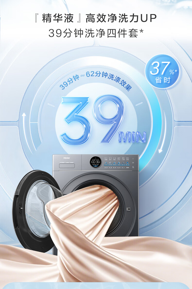 海尔(Haier)云溪4.0极薄 全自动滚筒洗衣机 12KG大容量 超薄大筒径 XQG120-SEU65DHU1