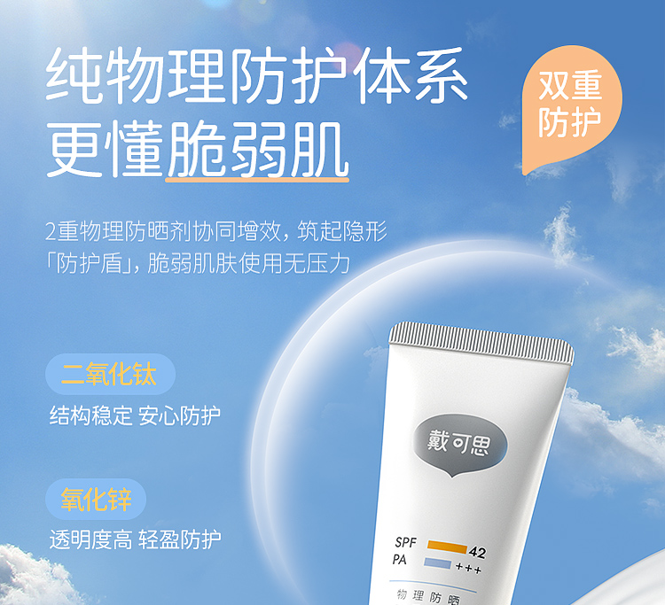 戴可思纯物理防晒清爽抗光老SPF42 PA+++