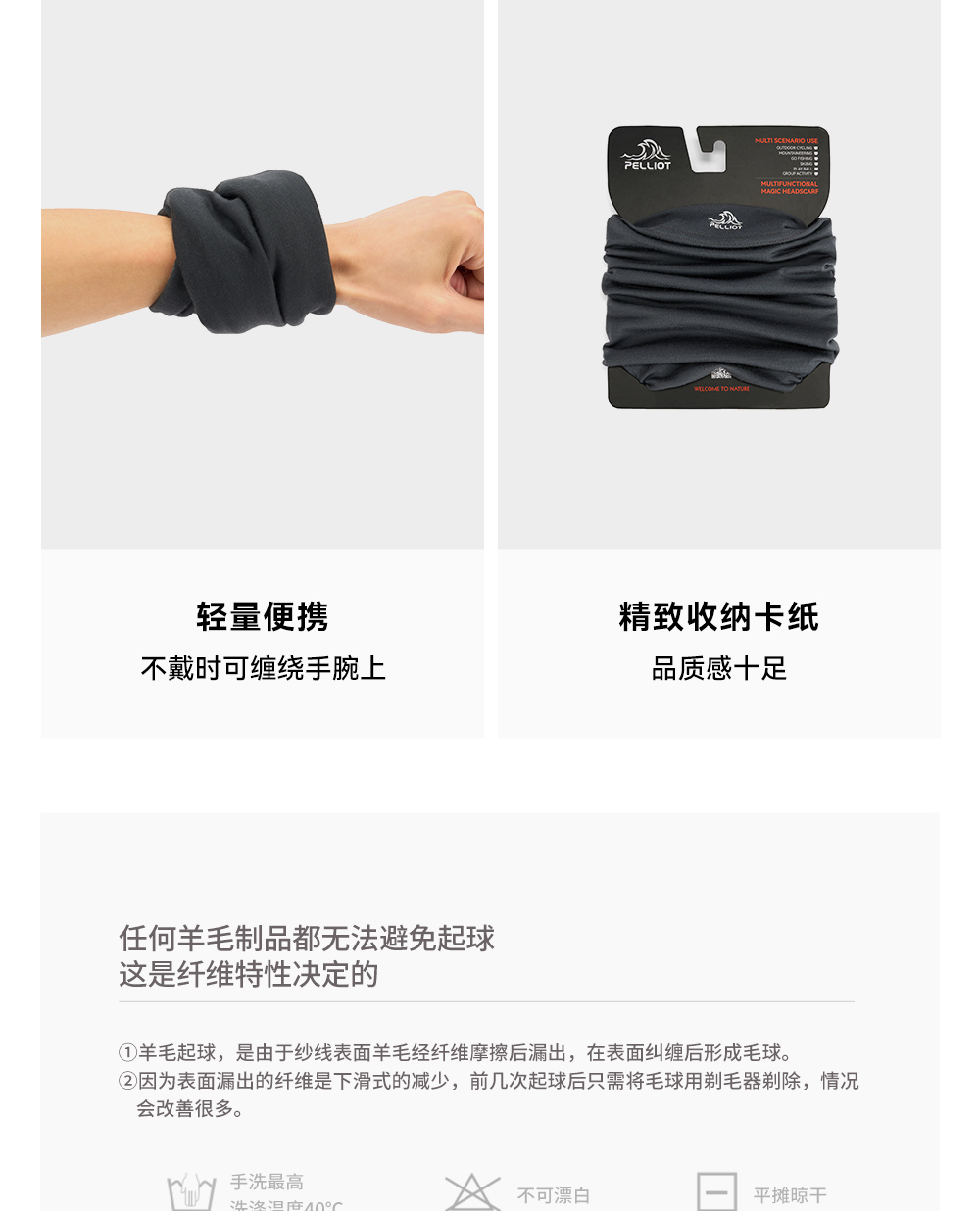 伯希和户外魔术头巾男美丽奴羊毛防风面罩登山徒步骑行保暖脖套女