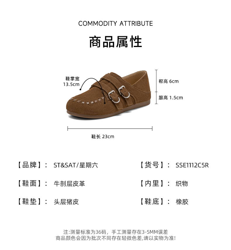 星期六26春新款复古山茶花百搭乐福鞋SSE1112C1F
