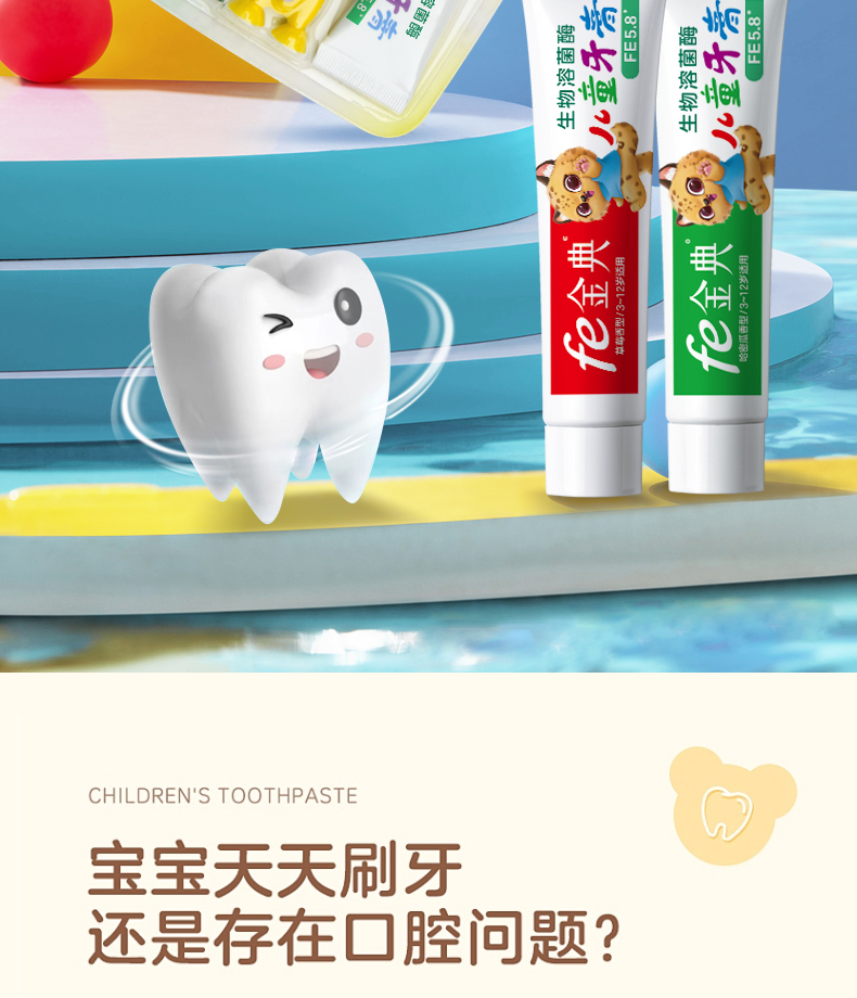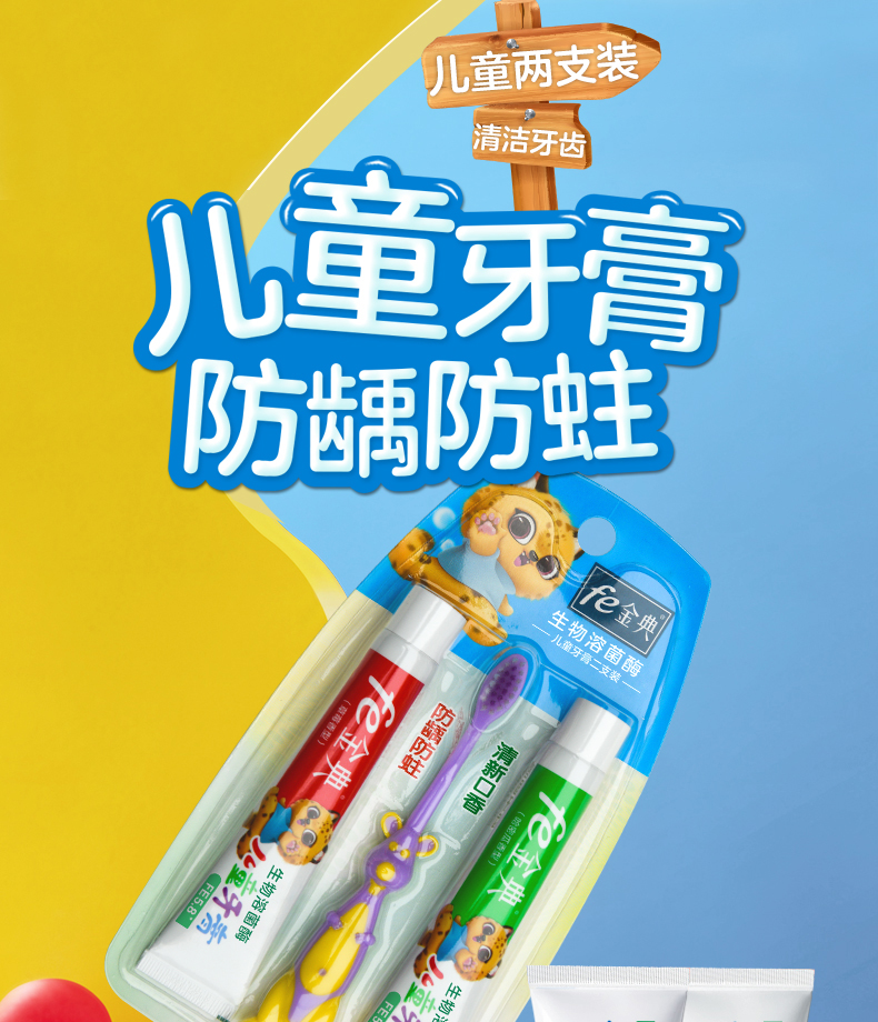 【双十二】fe金典口腔·早晚儿童牙膏带牙刷45g*2(草莓+哈密瓜)82023