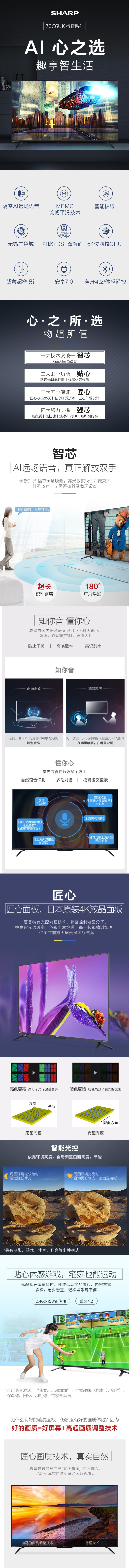 夏普(13416) SHARP 70C6UK 70英寸4K超高清人工智能远场语音遥控网络液晶平板电视机 2+16G 安卓7.0