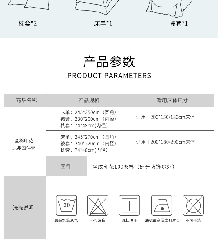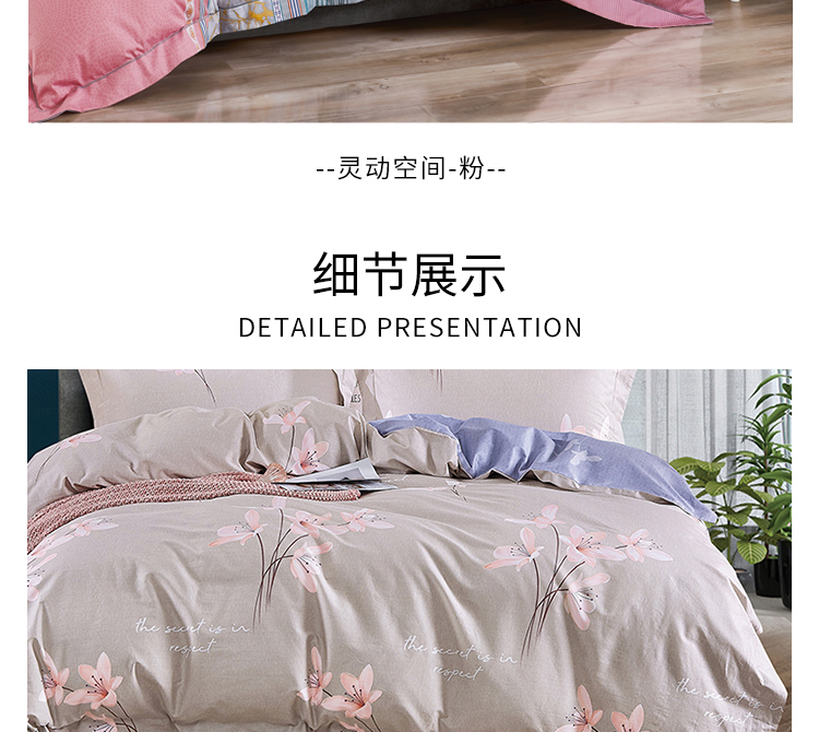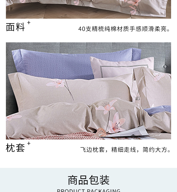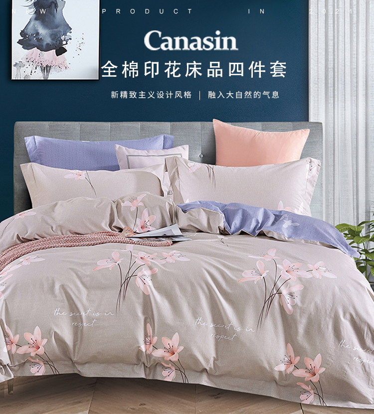 康乃馨 全棉纯棉印花床上四件套床单被套 简约家居用品