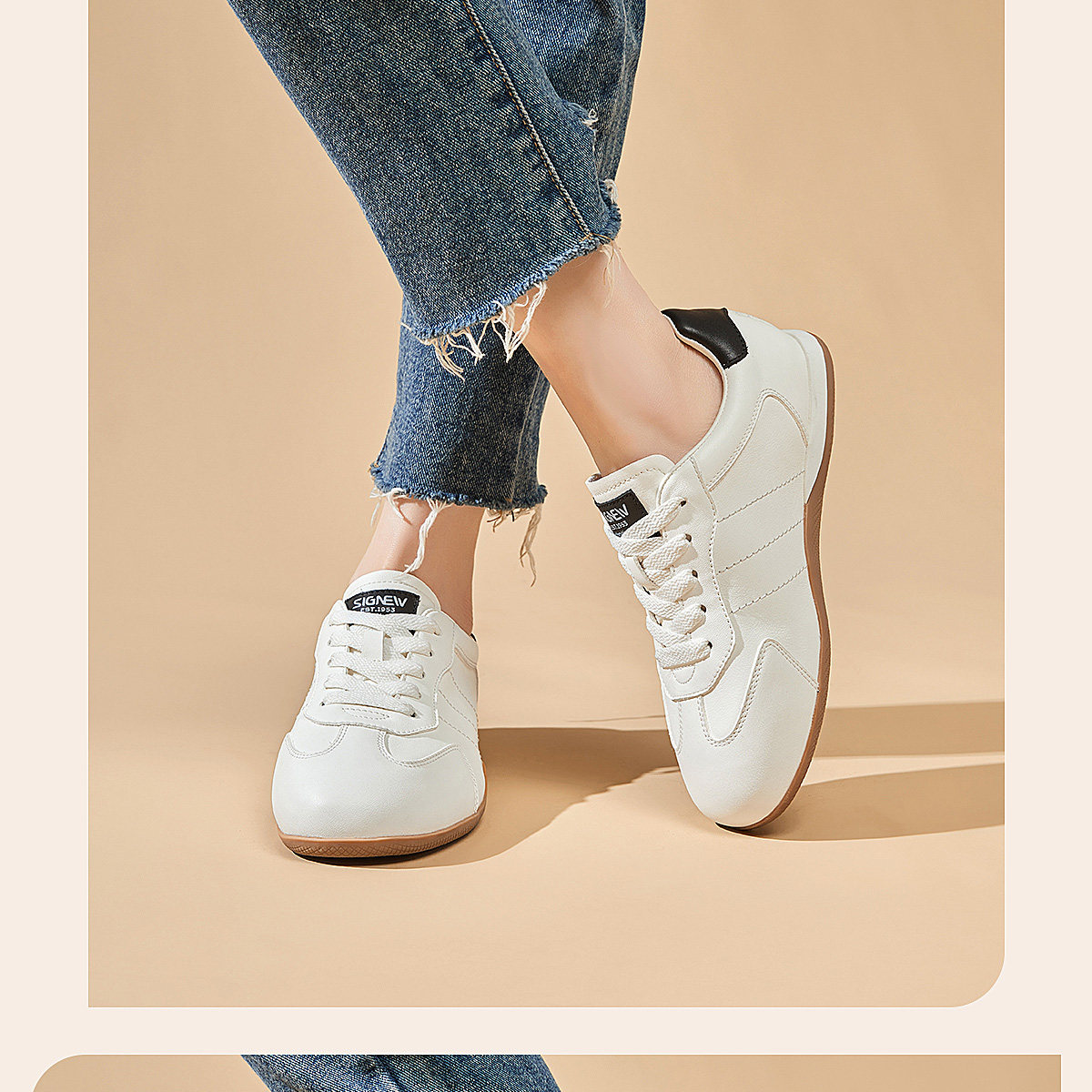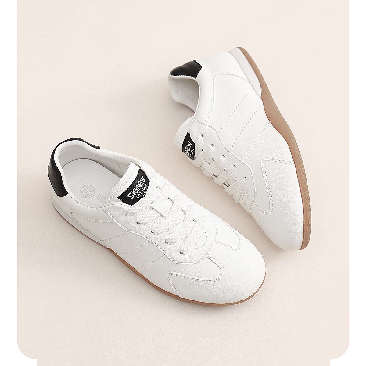 信诺妈妈单鞋复古德训鞋女真皮平底休闲运动鞋小白鞋2026春季新款X6C005-73