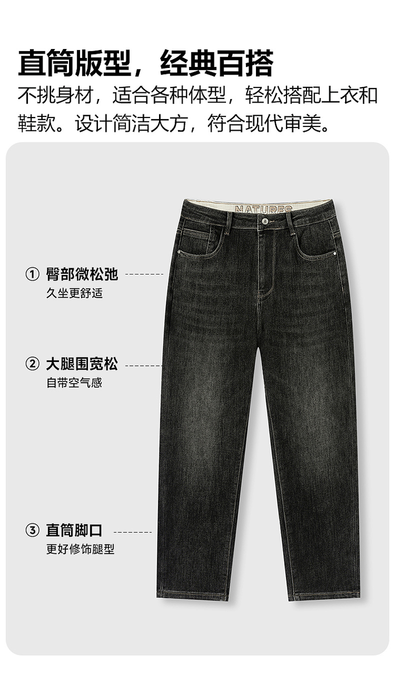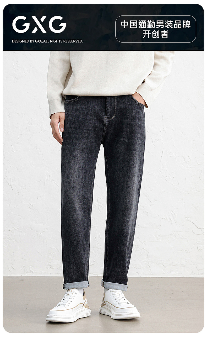 GXG男装25秋季复古简约经典日常通勤牛仔裤舒适亲肤男式直筒裤K&C
