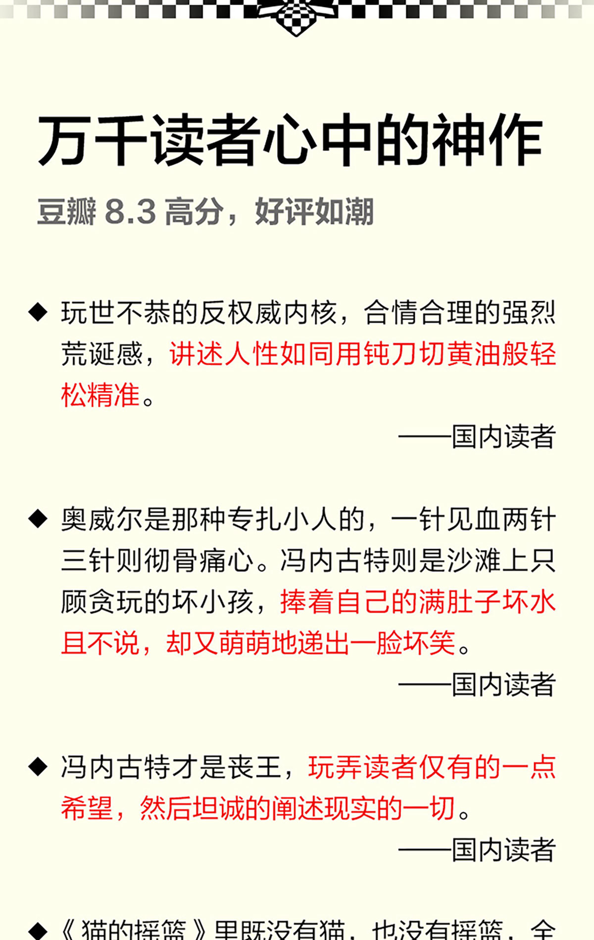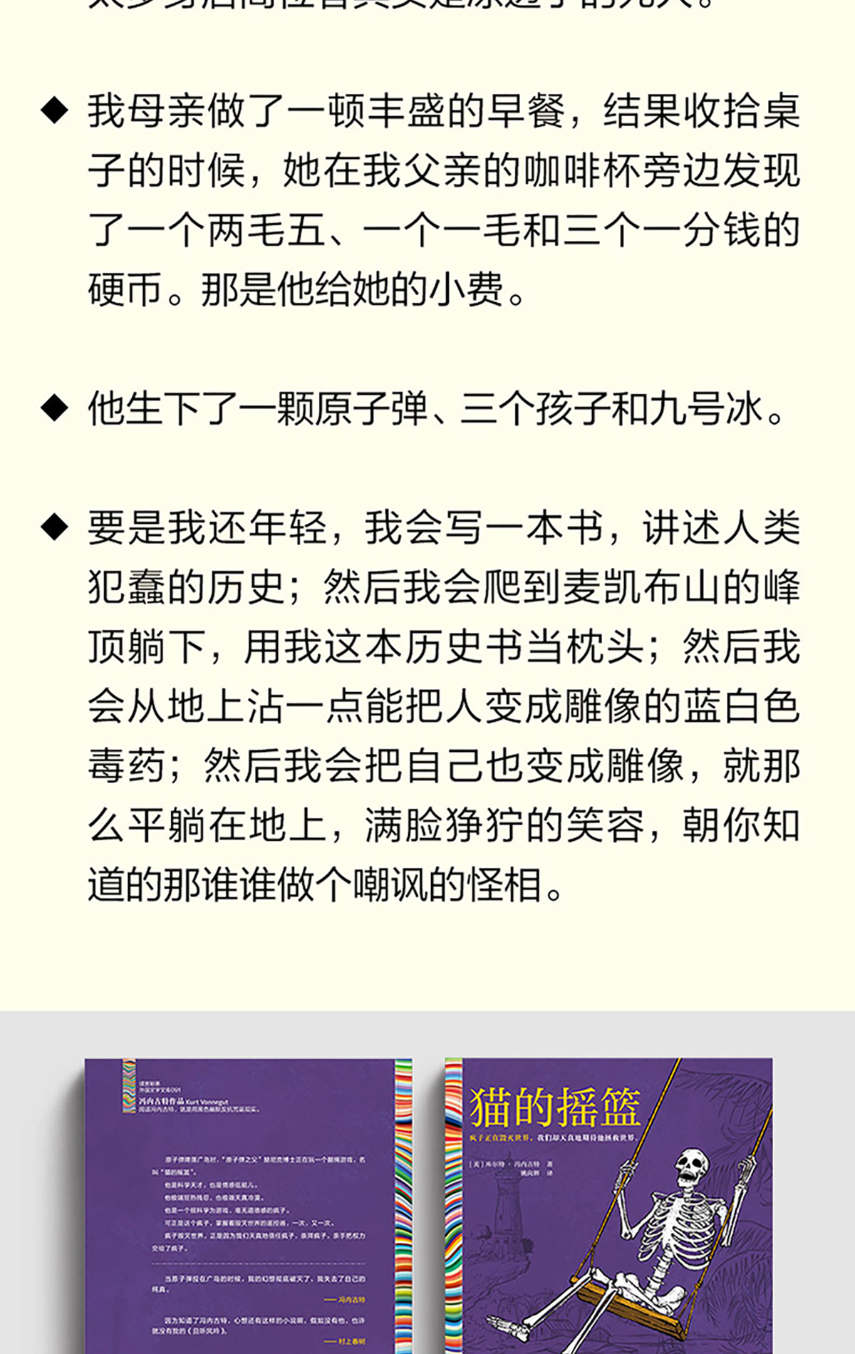 读客猫的摇篮 冯内古特 疯子毁灭世界 黑色幽默 地狱笑话大师