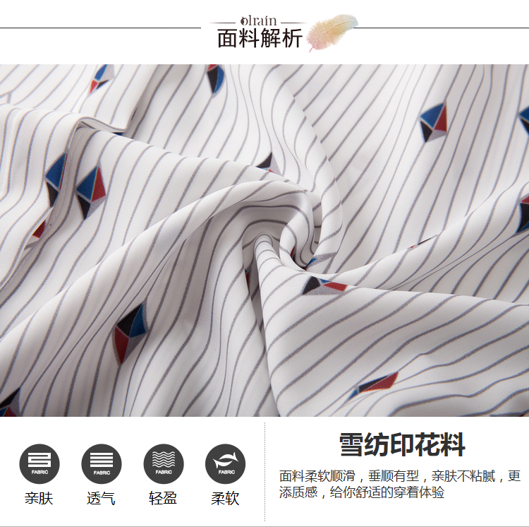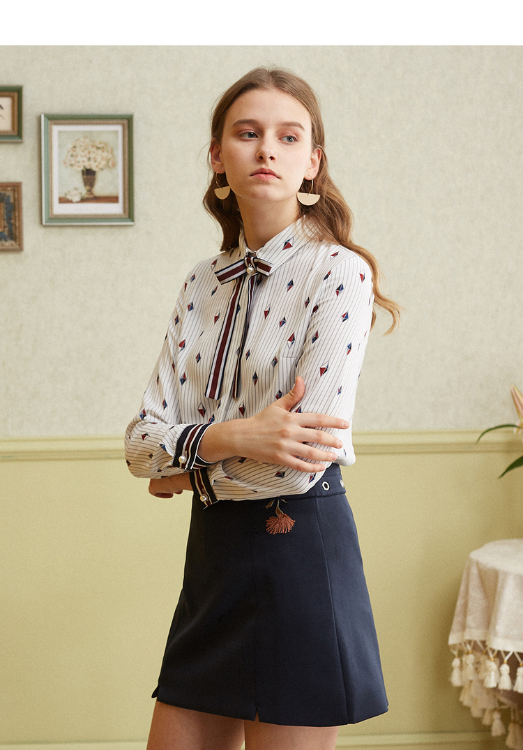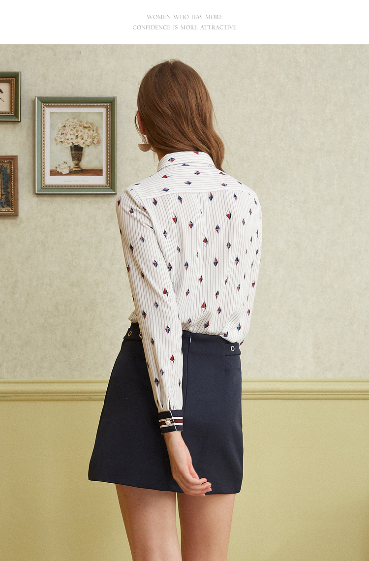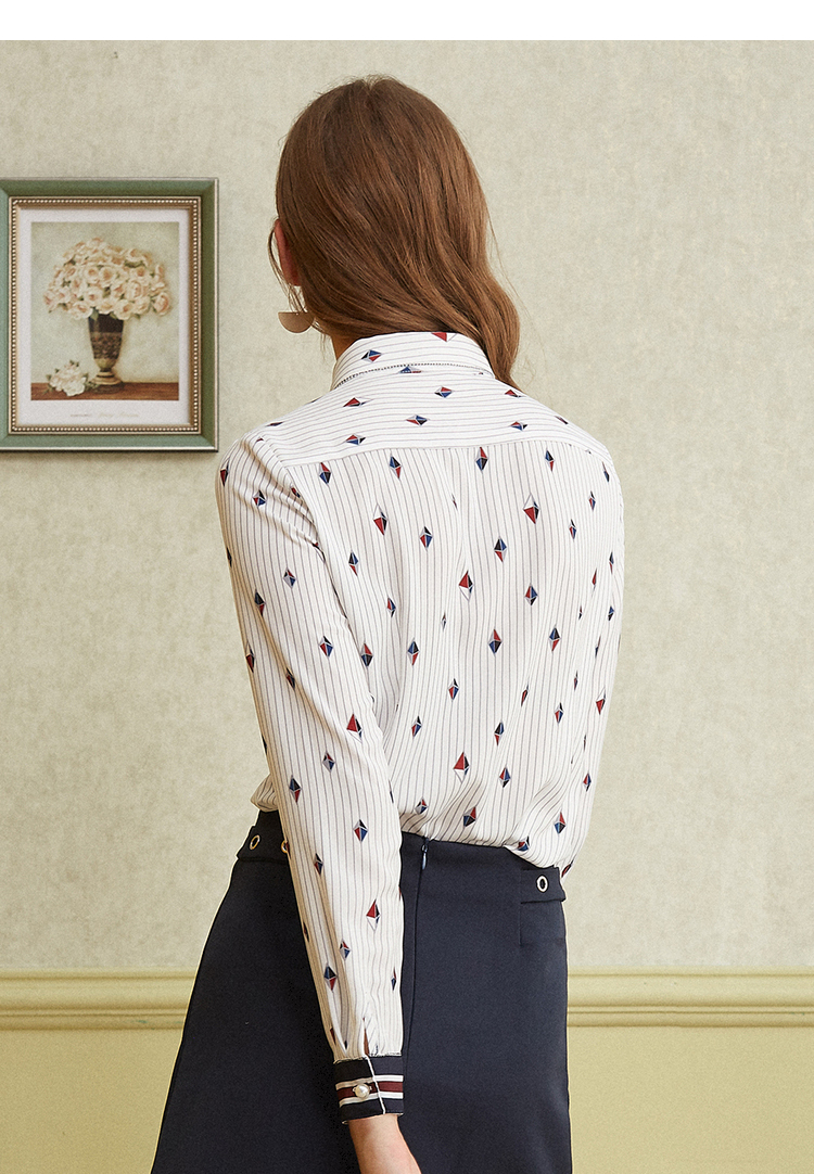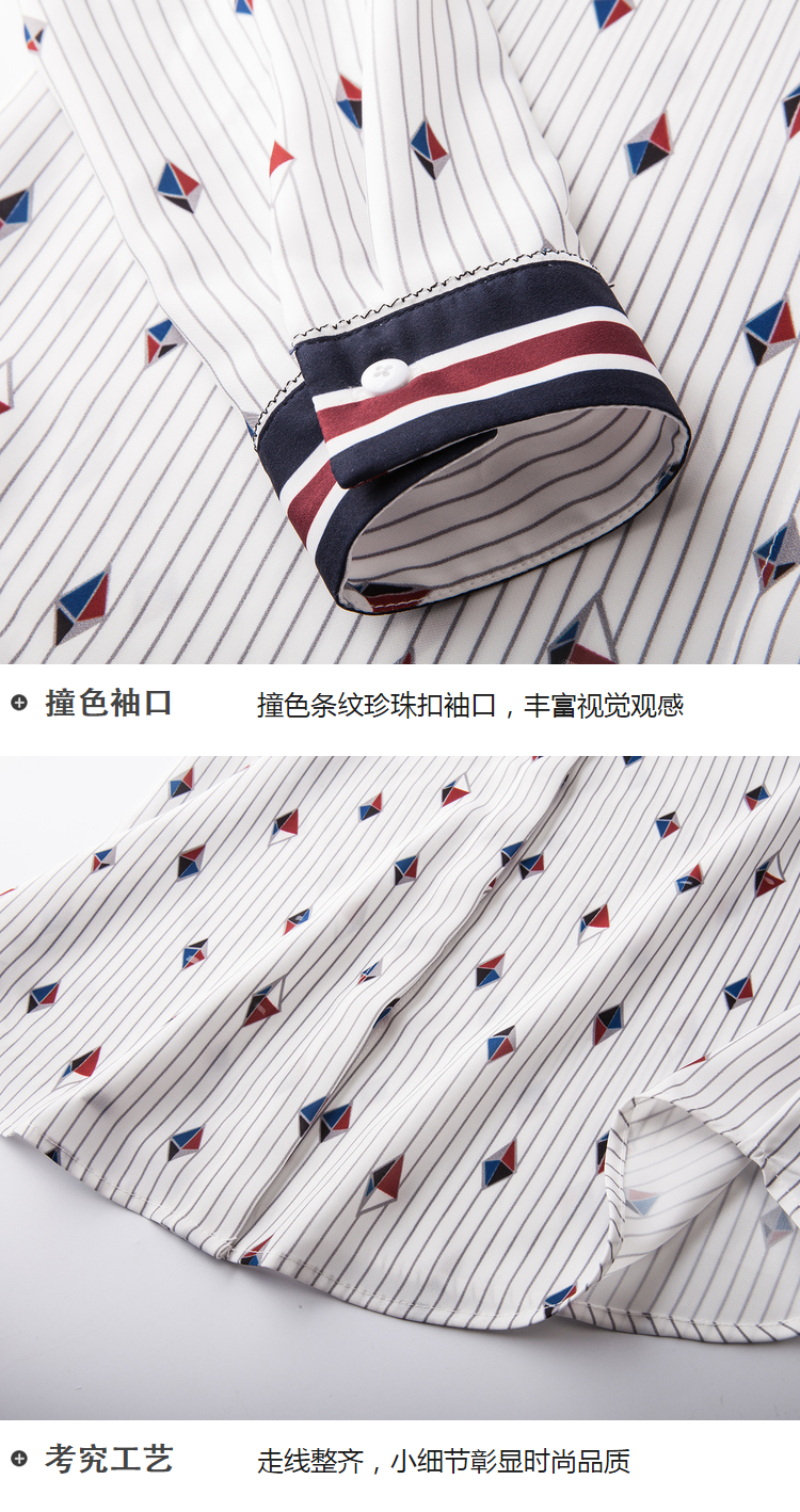 欧芮儿2018秋装新款显瘦图案印花方领衬衣女打底条纹衬衫女长袖