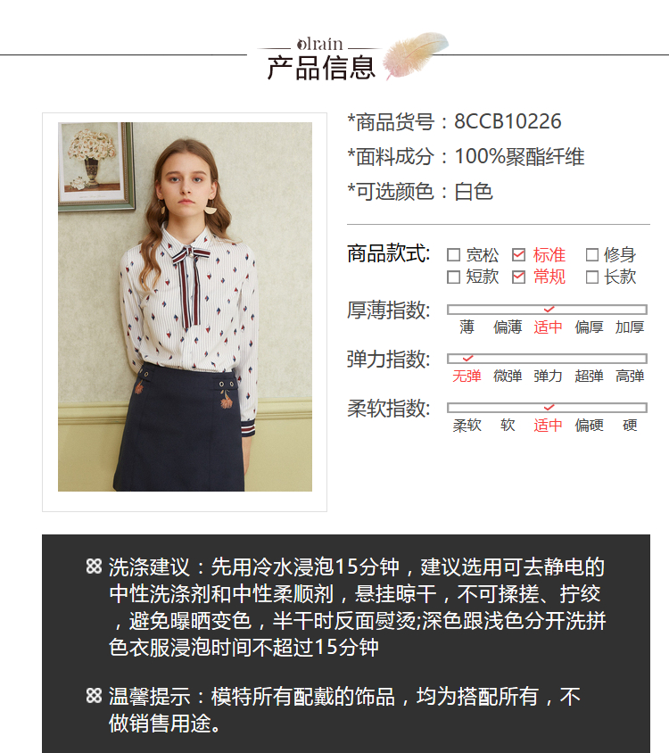 - “精致”是欧芮儿olrain品牌文化的核心,欧芮儿认为,精致的女人,不但要外在动人,更要内在迷人,内外兼修,有魅力、有气质、有内涵,自信而不自傲,优雅而不矫揉,自有万种风情而不轻浮,更不故作矜持。