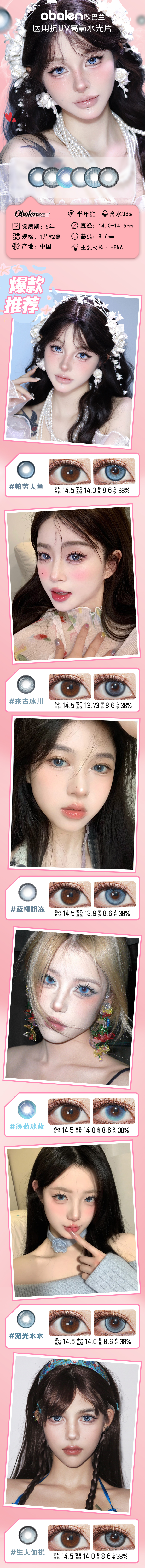 Obalen【第2副0元】半年抛美瞳【蓝色合集】欧巴兰纯欲高光显色网红款隐形眼镜2片装