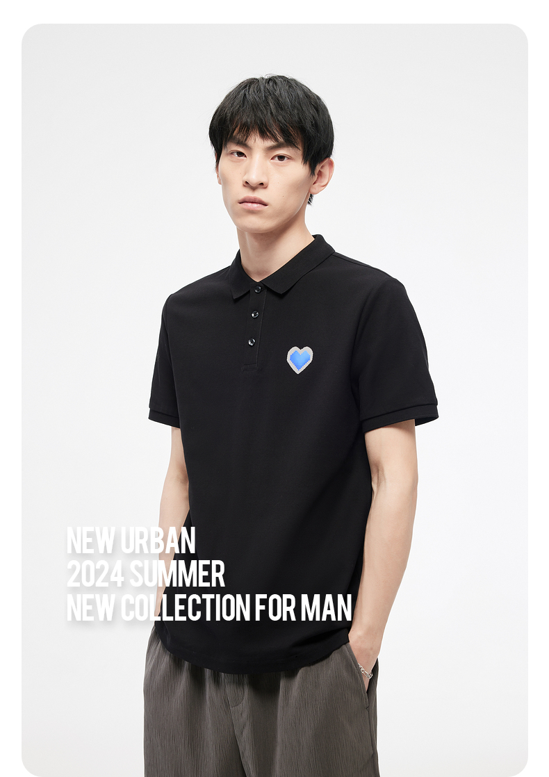 GXG男装 简约爱心印花情侣短袖Polo衫男翻领短袖t恤 款