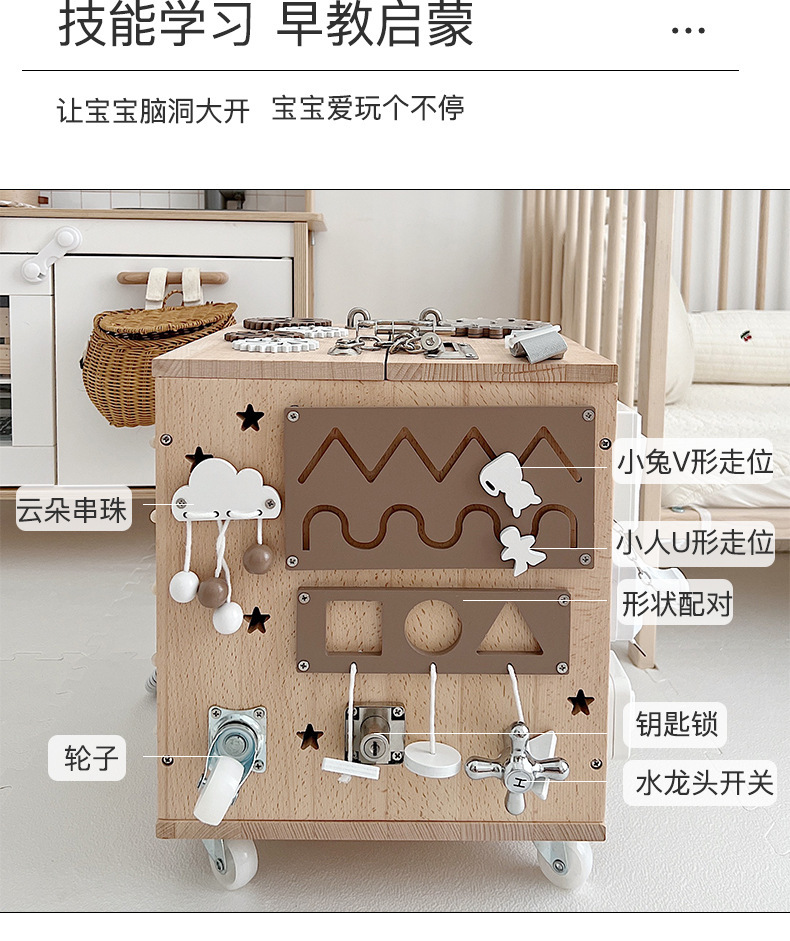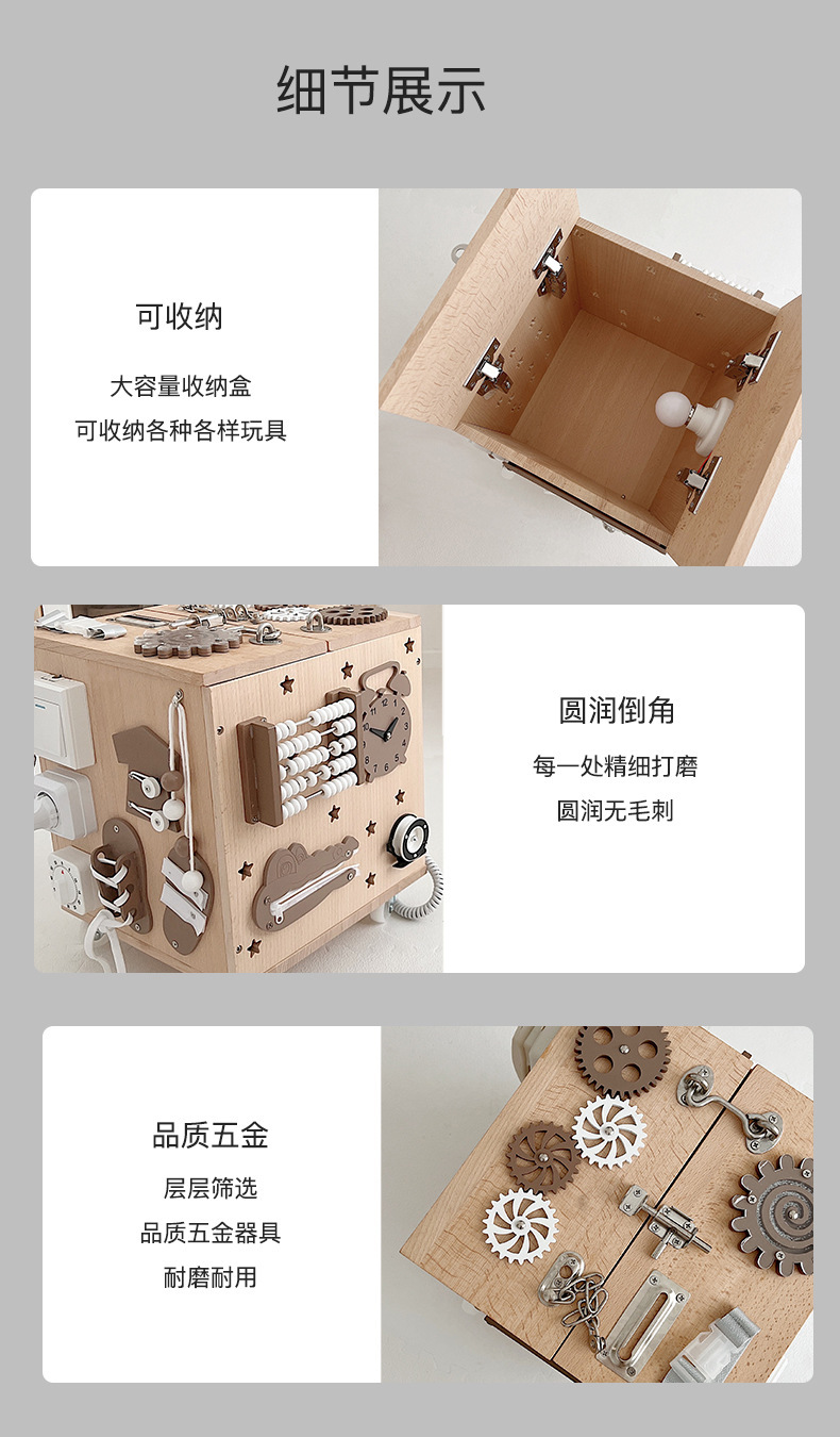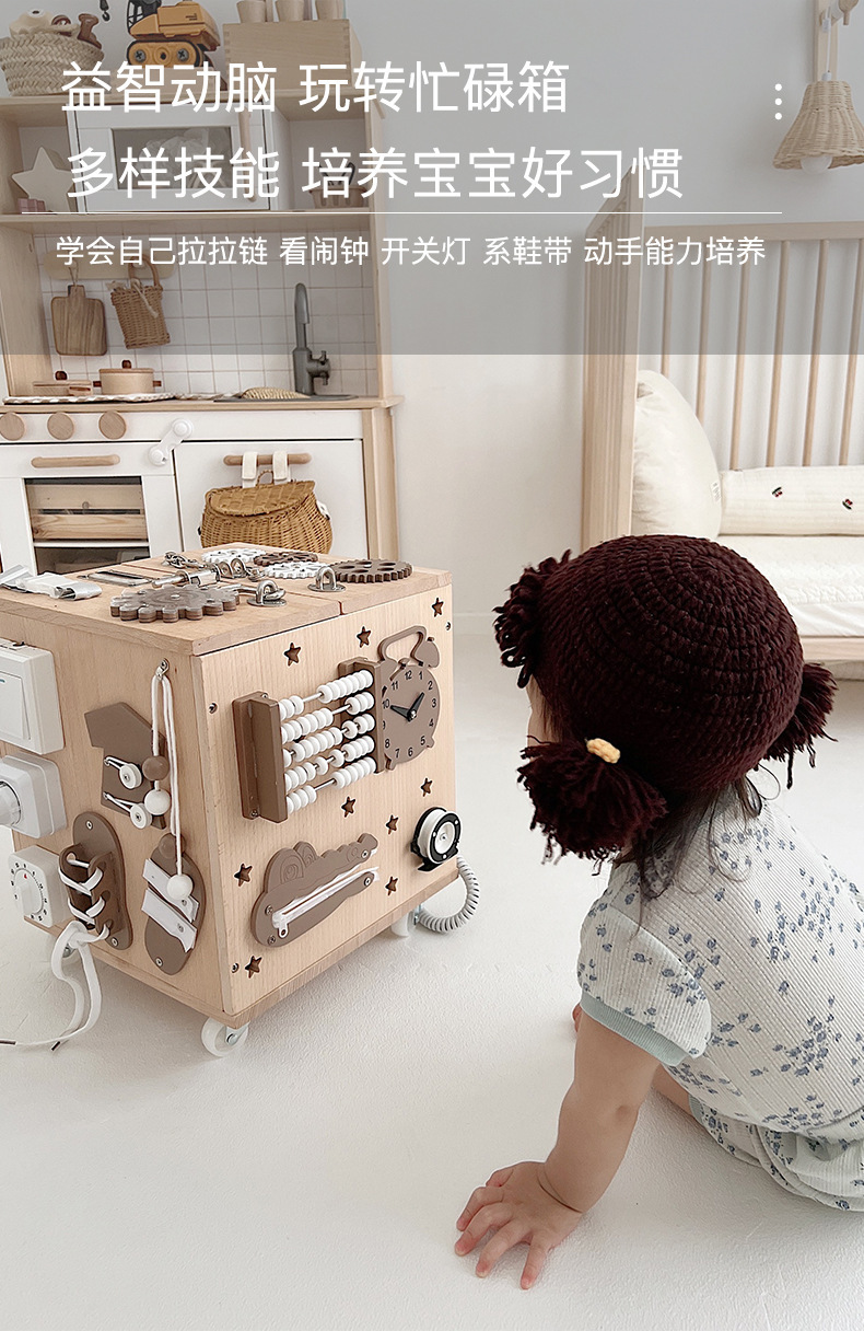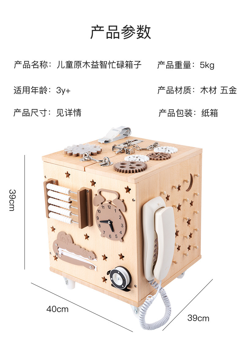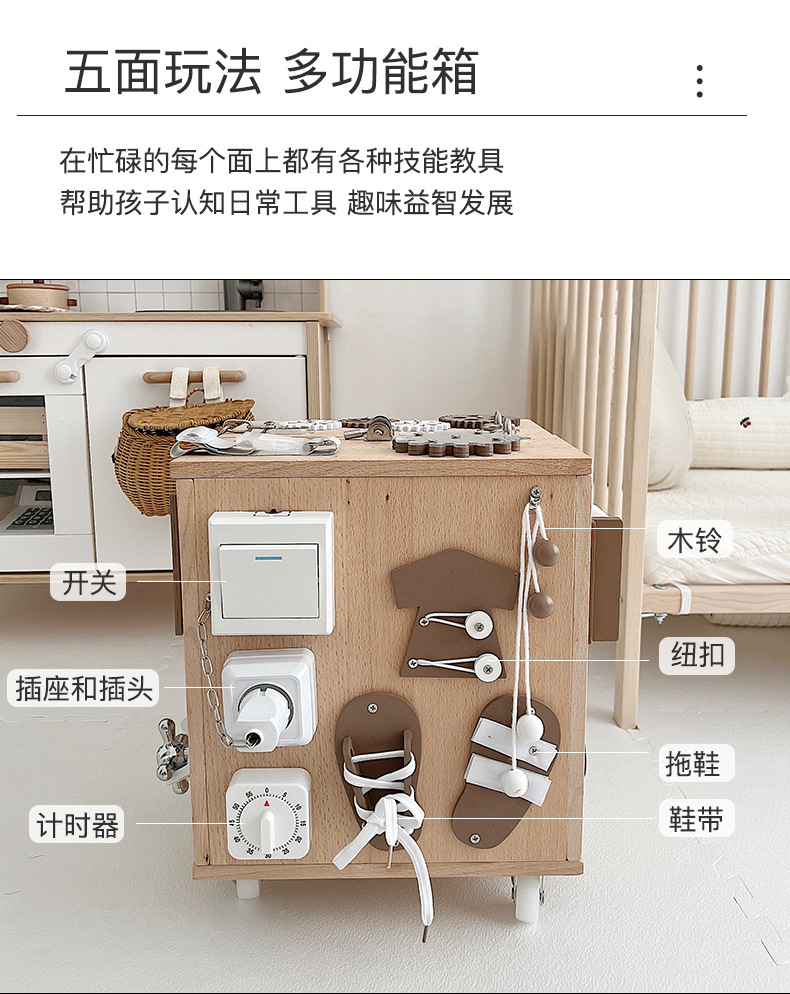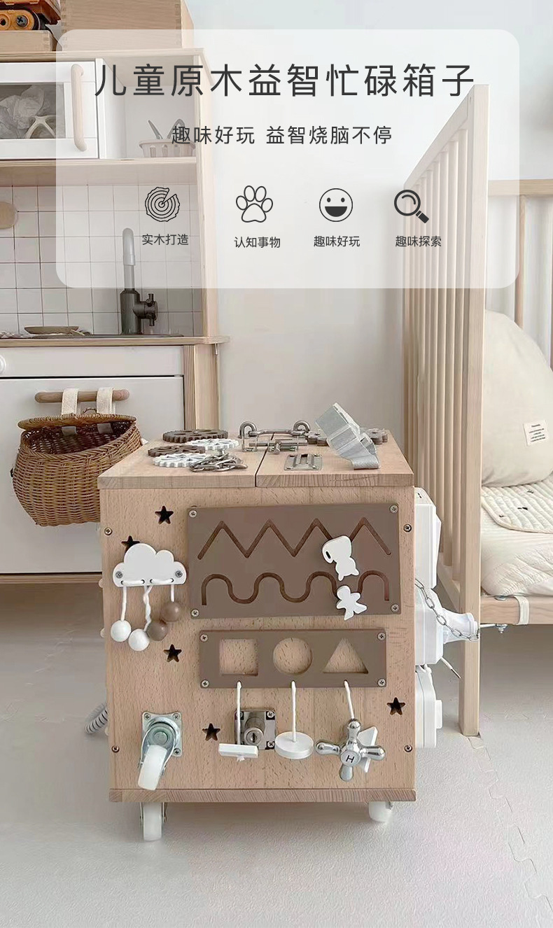 【纯榉木实木打造的六面箱】儿童原木益智忙碌箱子 启蒙教育 激发宝宝探索欲 每个玩法都和生活息息相关 学习生活基础技能 百宝箱玩具屋