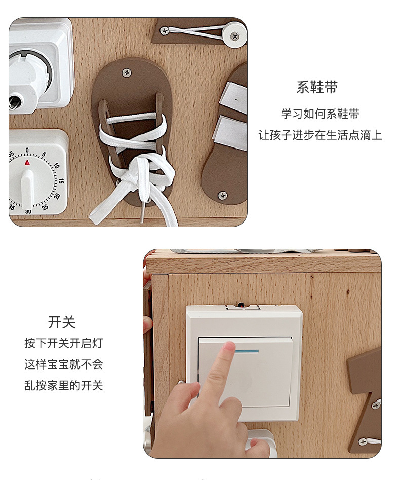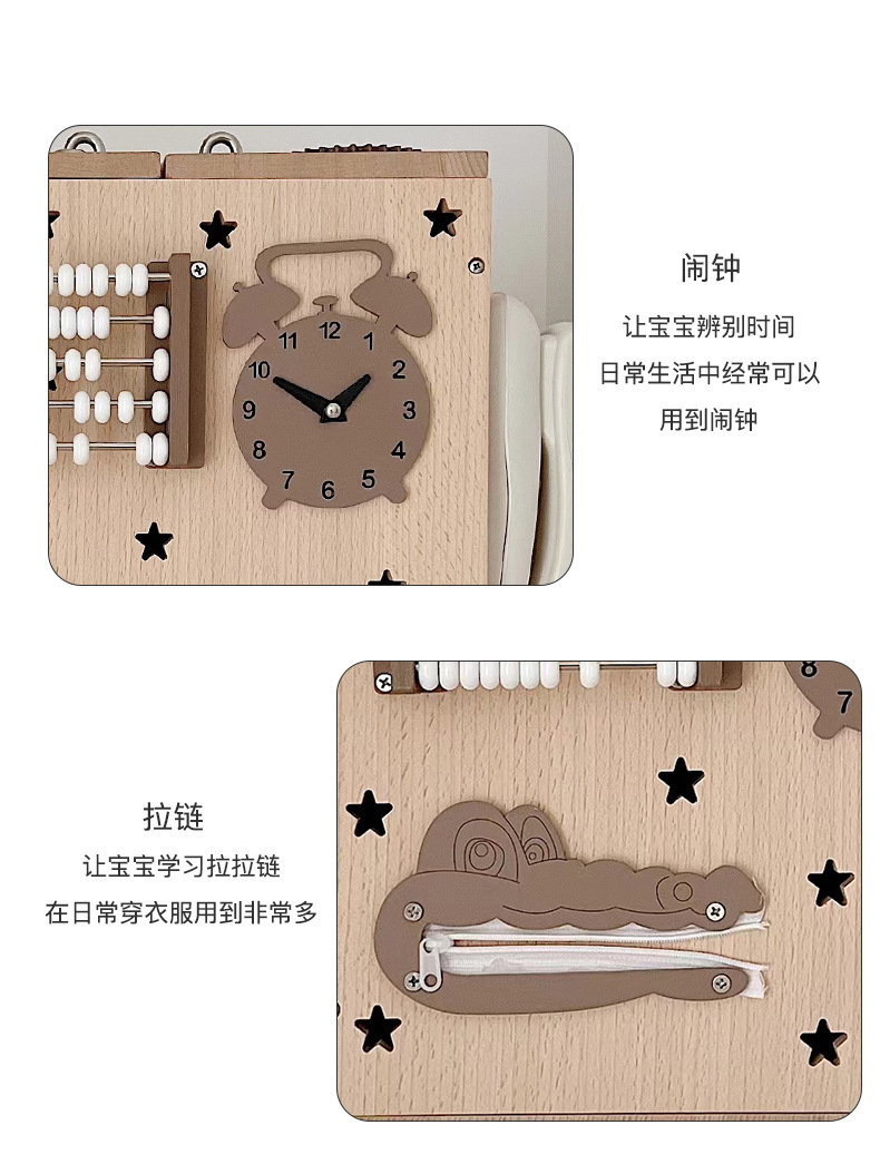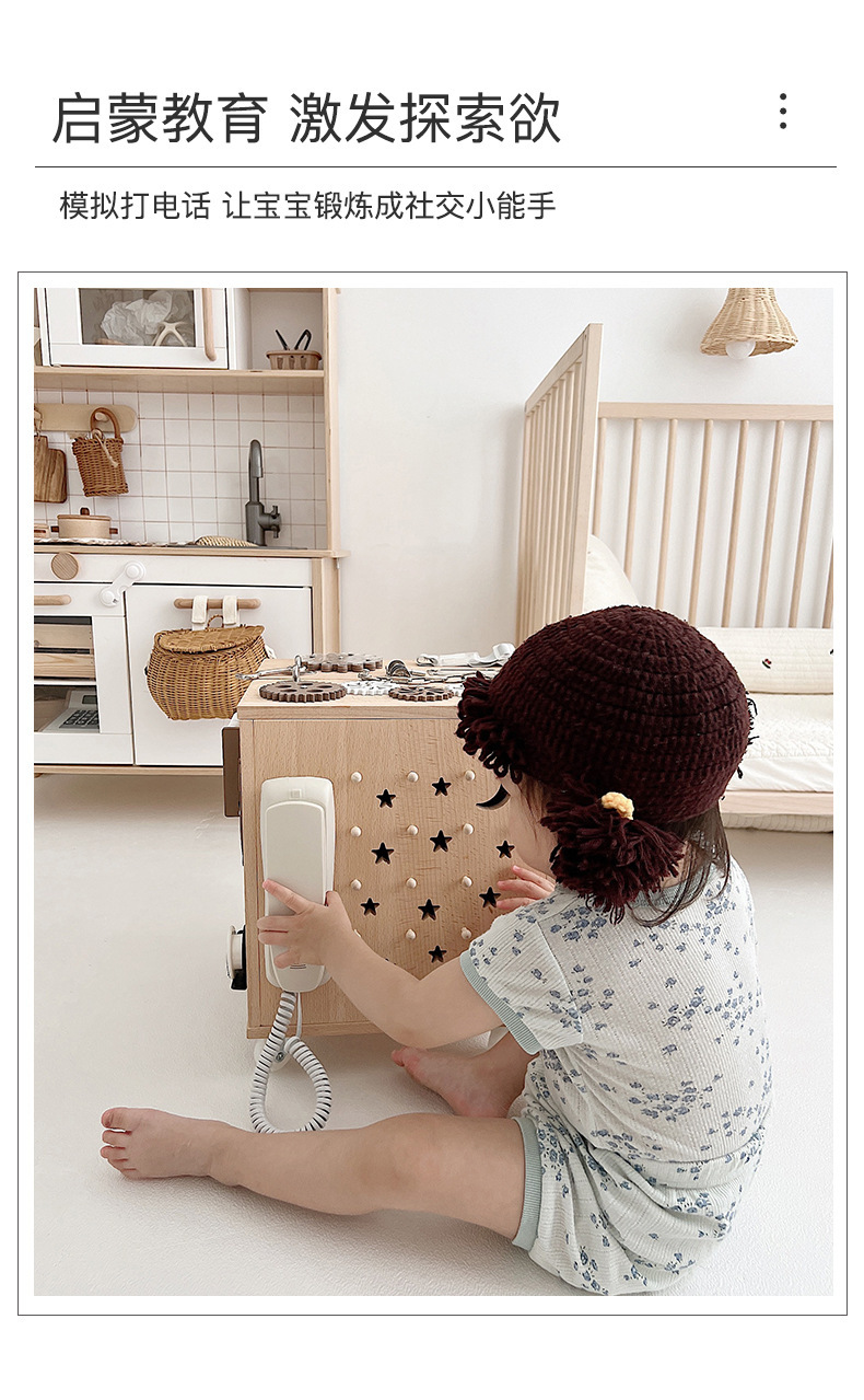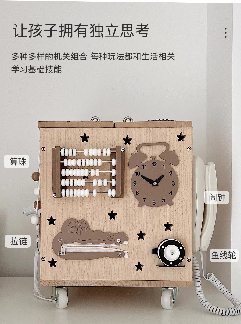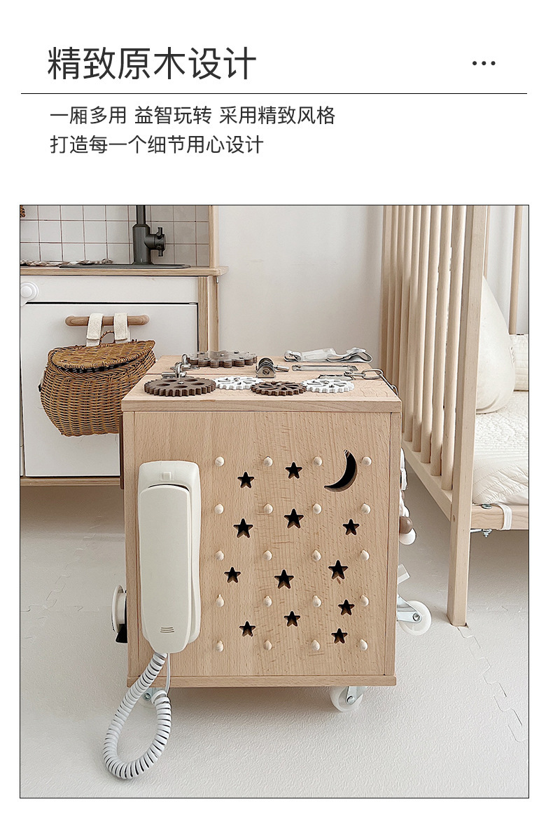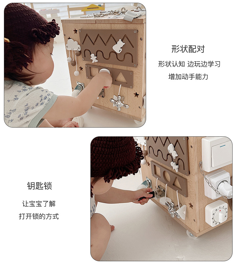 【纯榉木实木打造的六面箱】儿童原木益智忙碌箱子 启蒙教育 激发宝宝探索欲 每个玩法都和生活息息相关 学习生活基础技能 百宝箱玩具屋