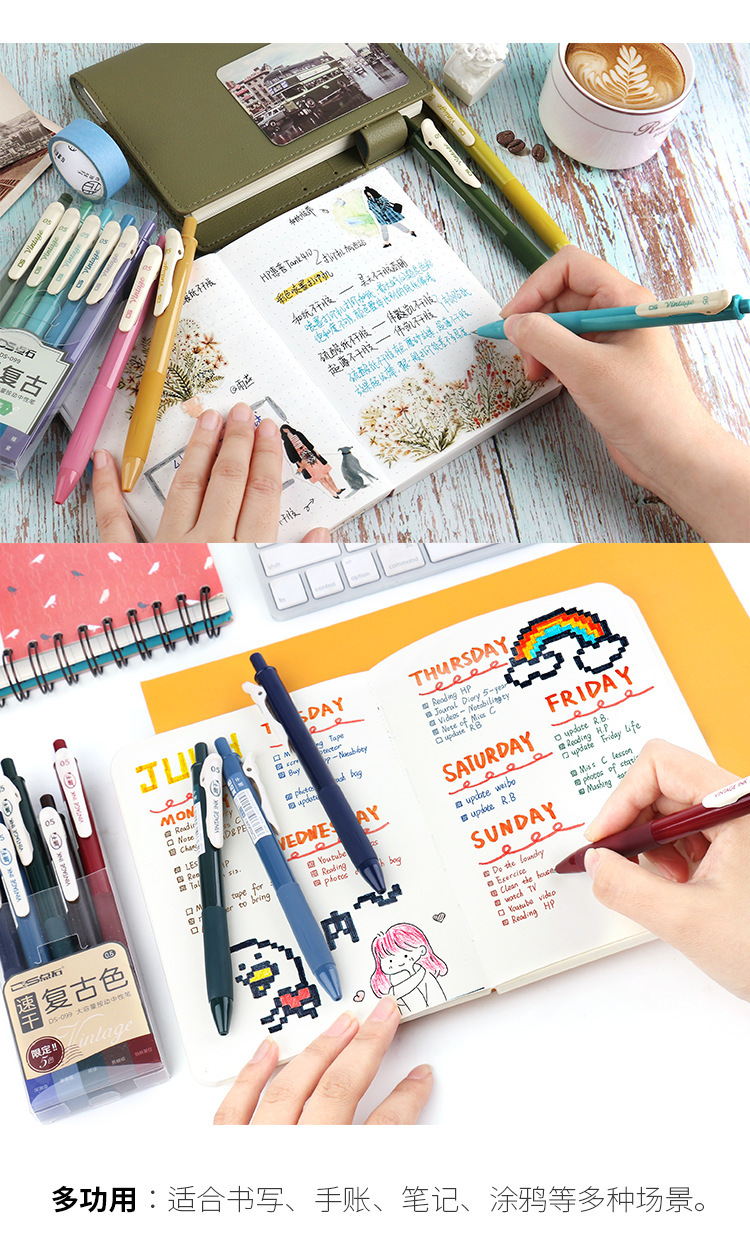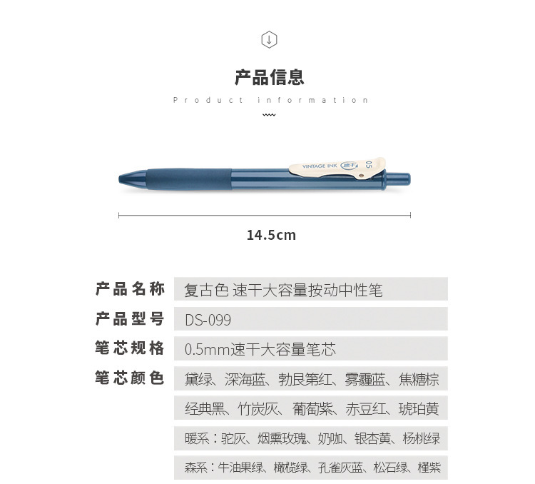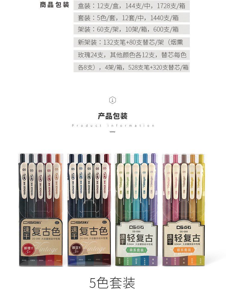 点石按动复古色速干中性笔DS-099