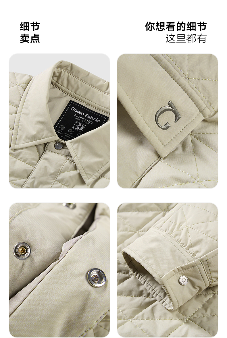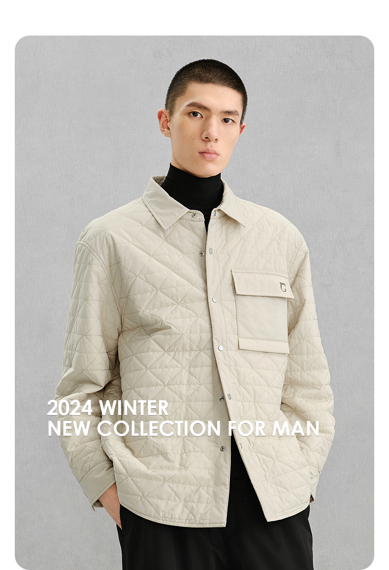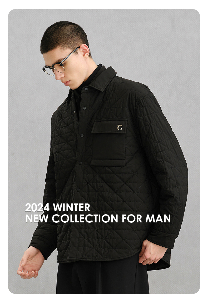 GXG男装 绗缝衬衫式加厚夹克通勤外套 24年冬G24X214103