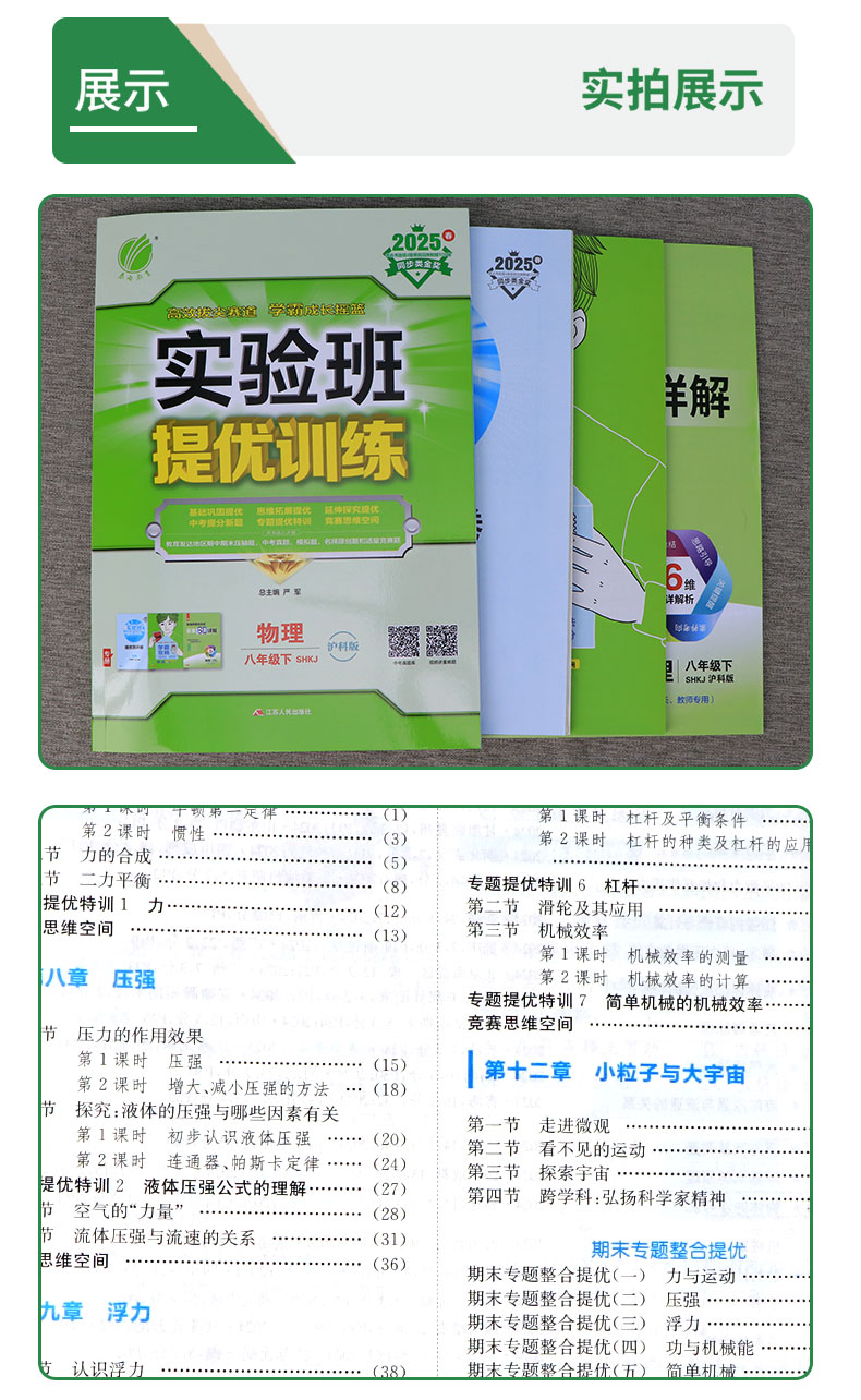2025年春 【沪科版】八年级下册物理 实验班提优训练