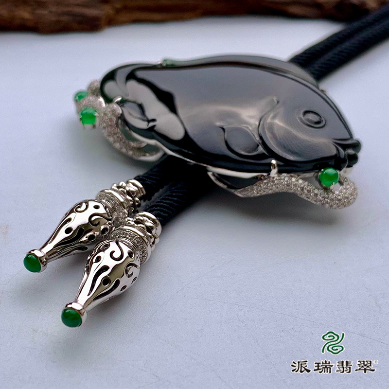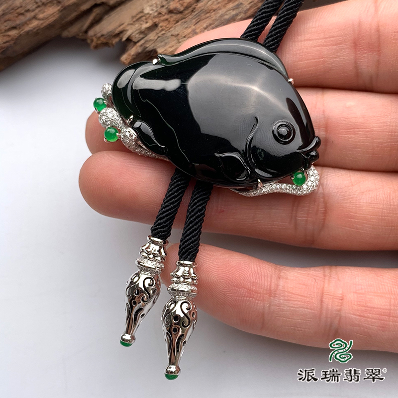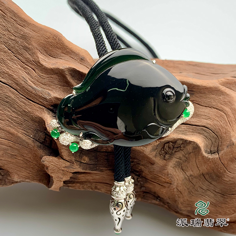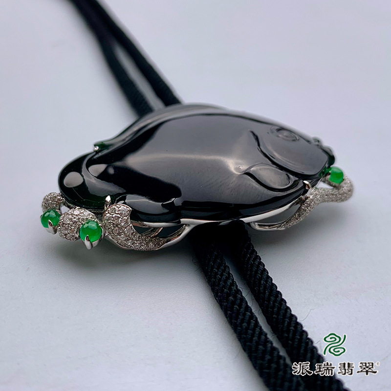 派瑞翡翠 18k金翡翠挂件 冰糯种 绿色 墨翠