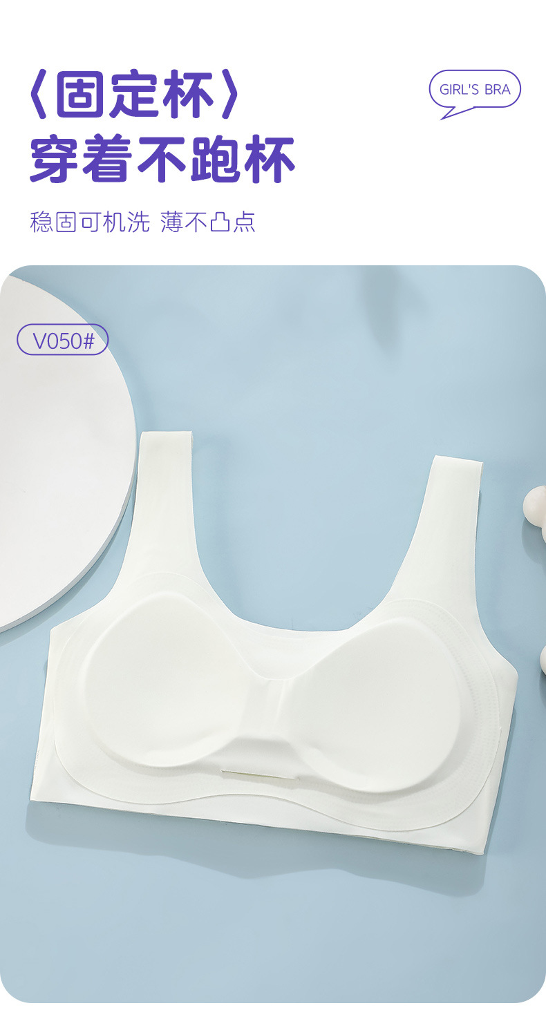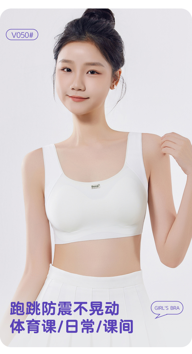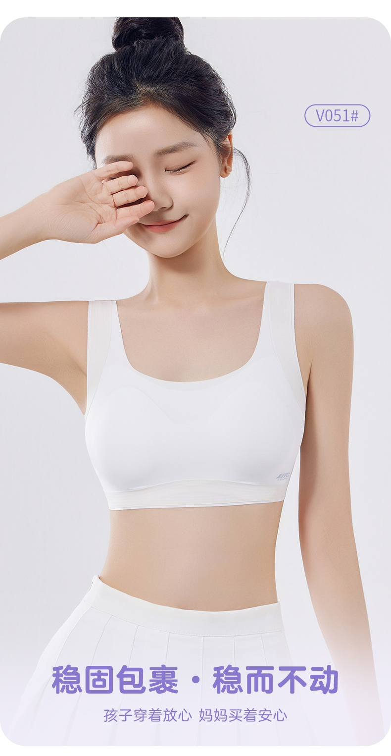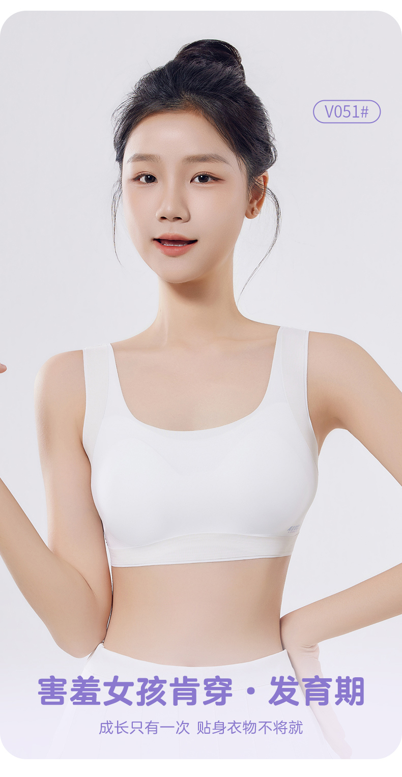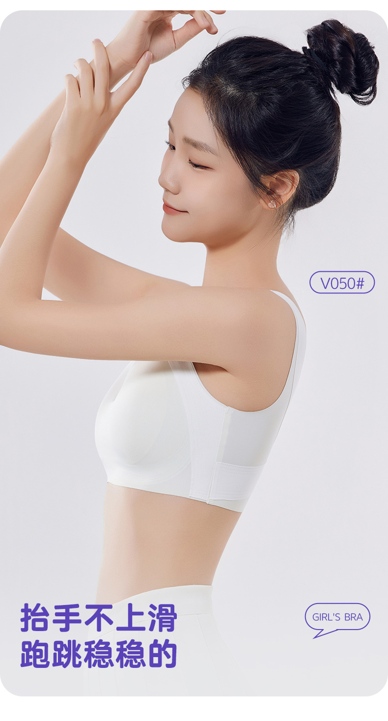 女士少女文胸无痕二三阶段渐变下围全固定杯少女Bra运动防震少女背心V050/V051/V057