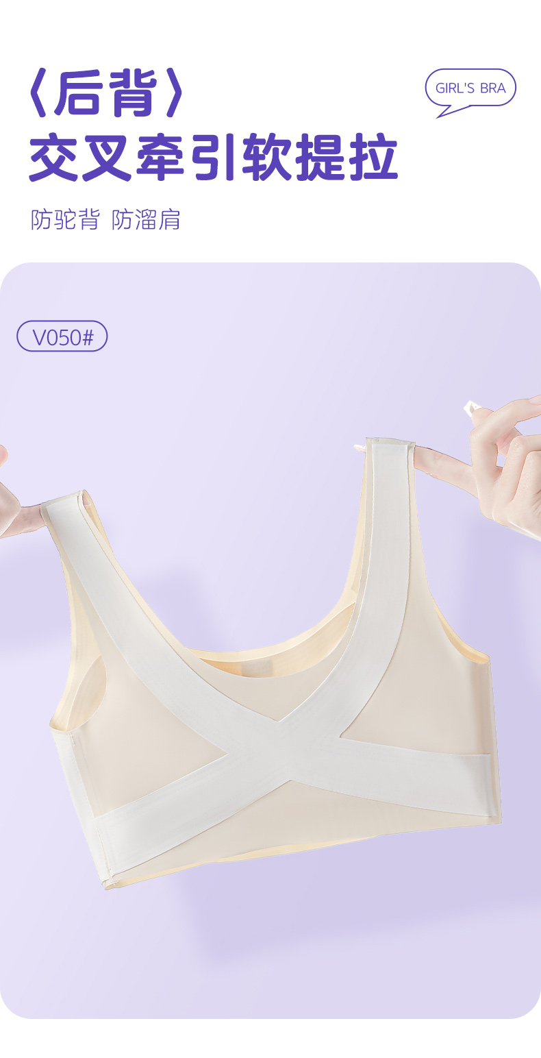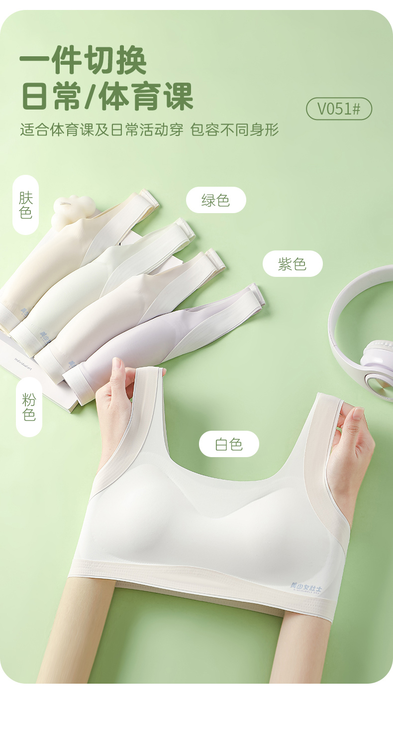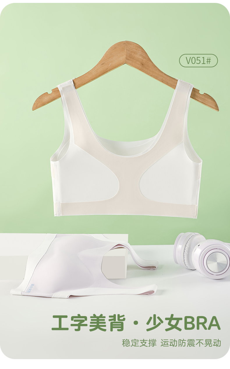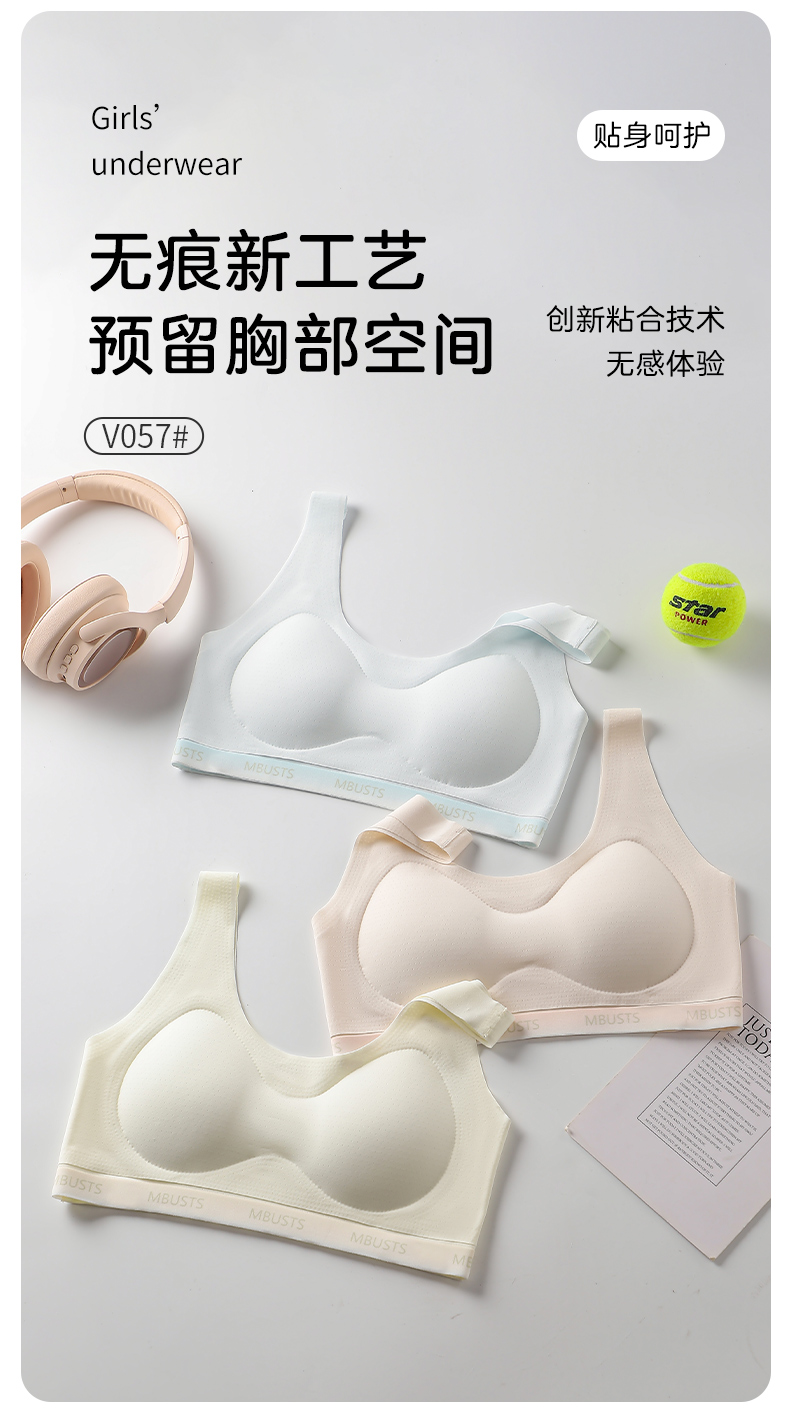 女士少女文胸无痕二三阶段渐变下围全固定杯少女Bra运动防震少女背心V050/V051/V057