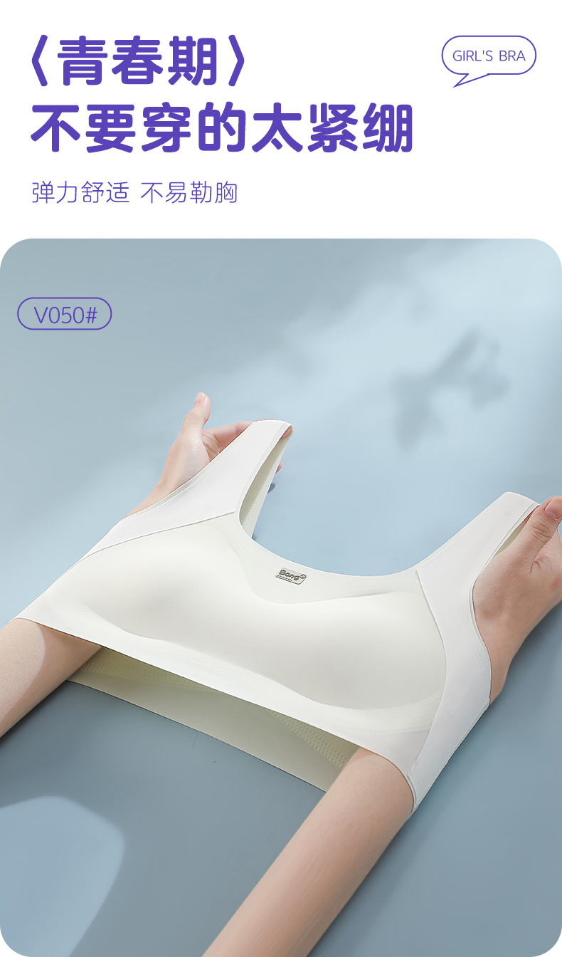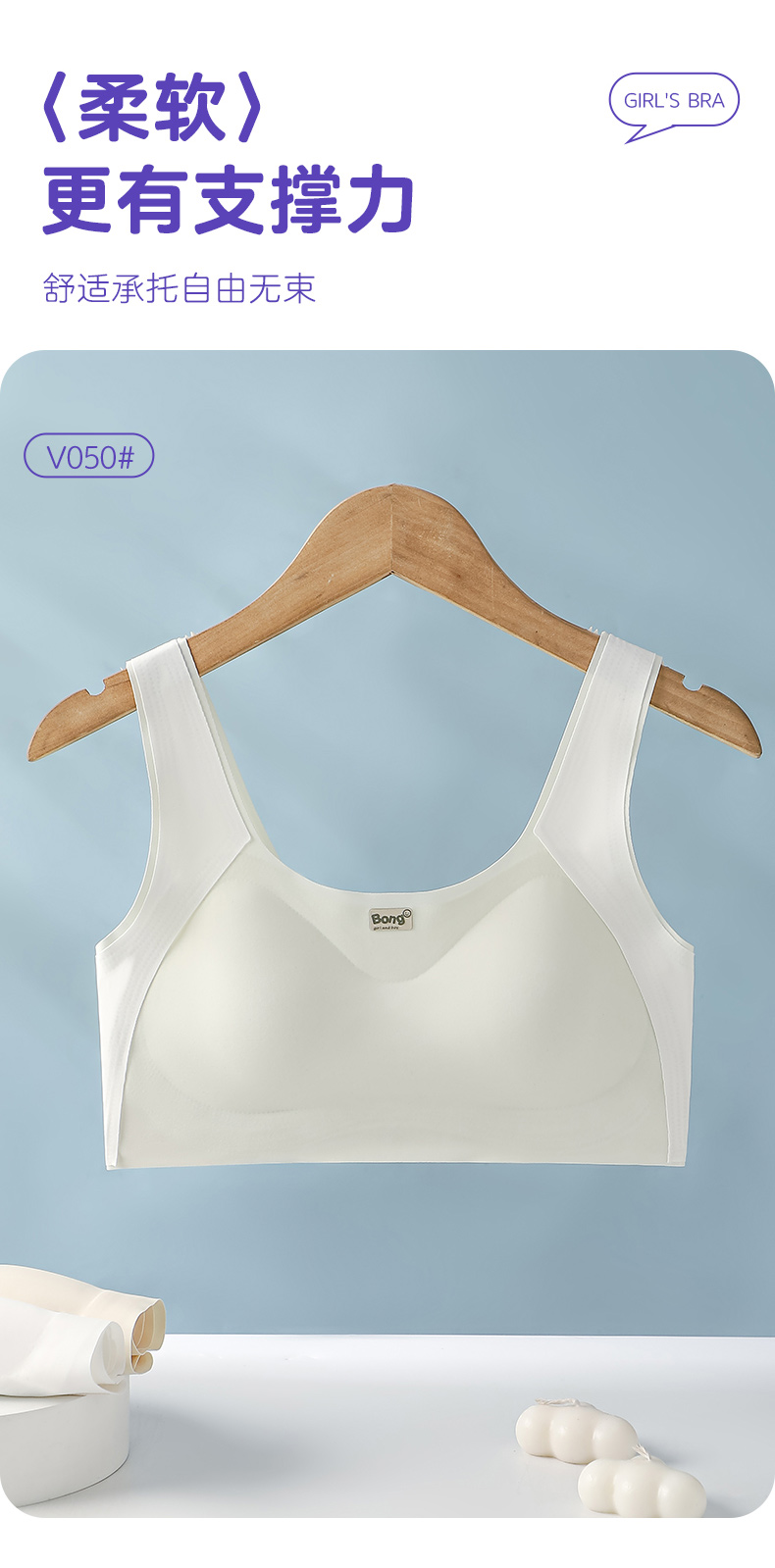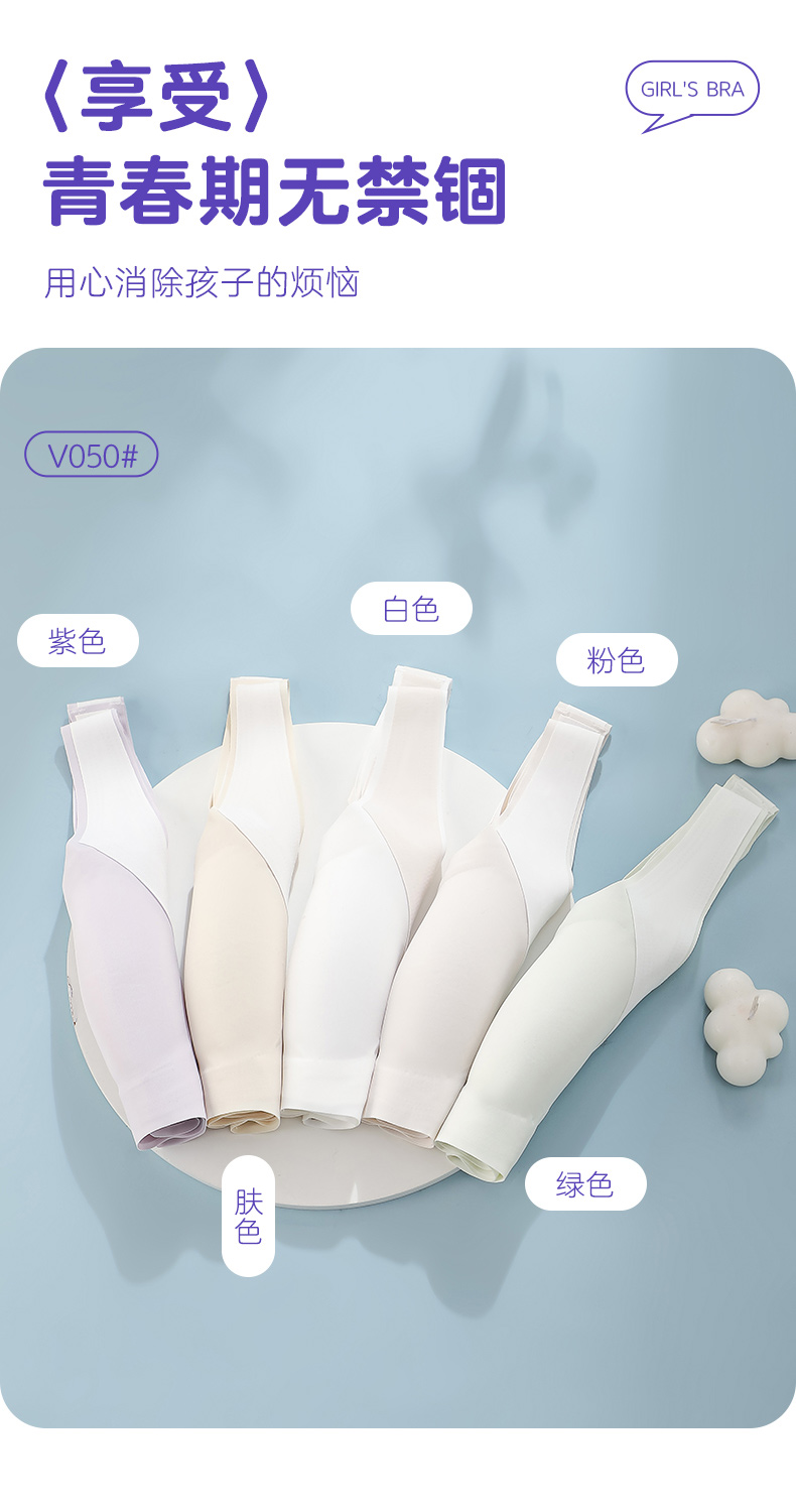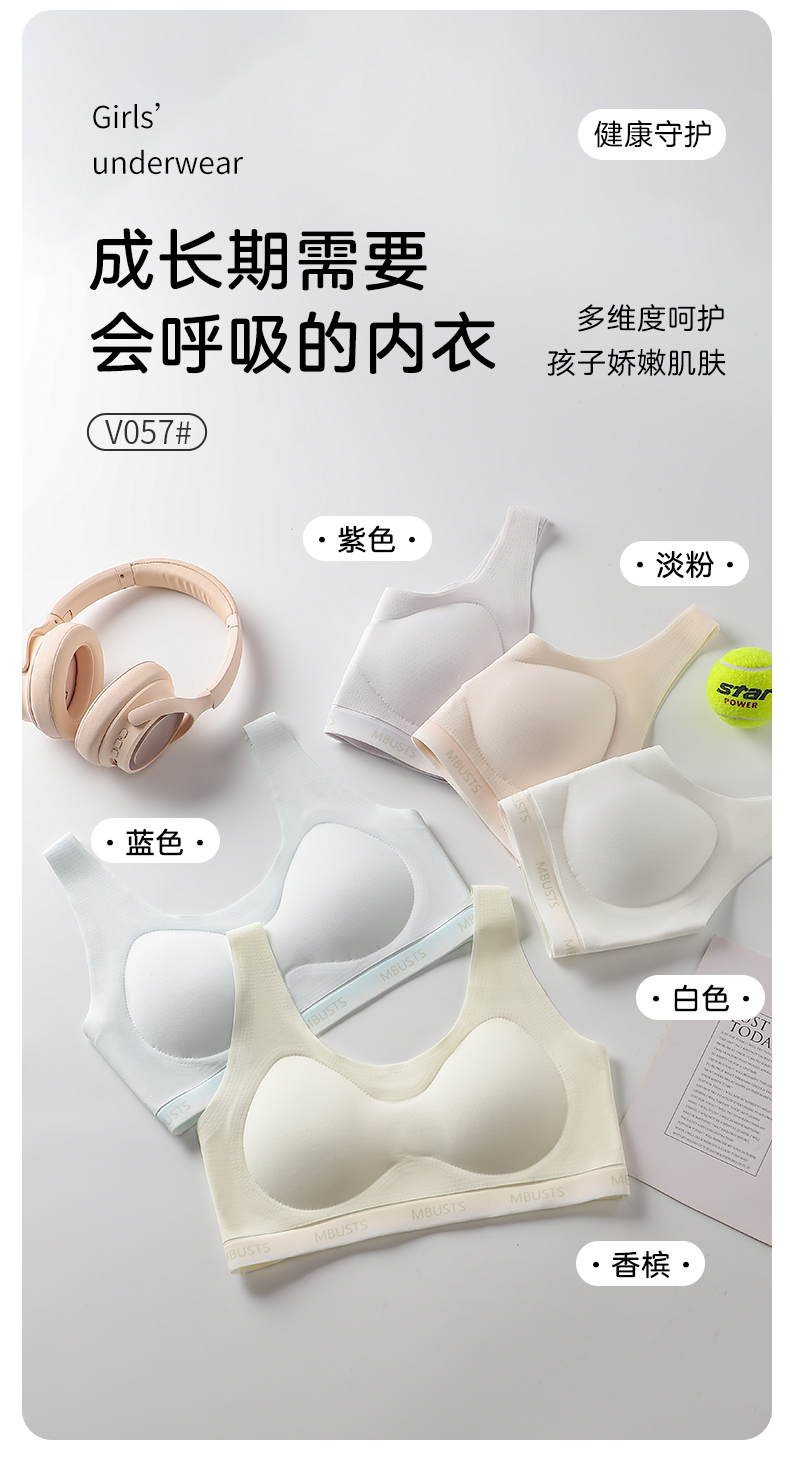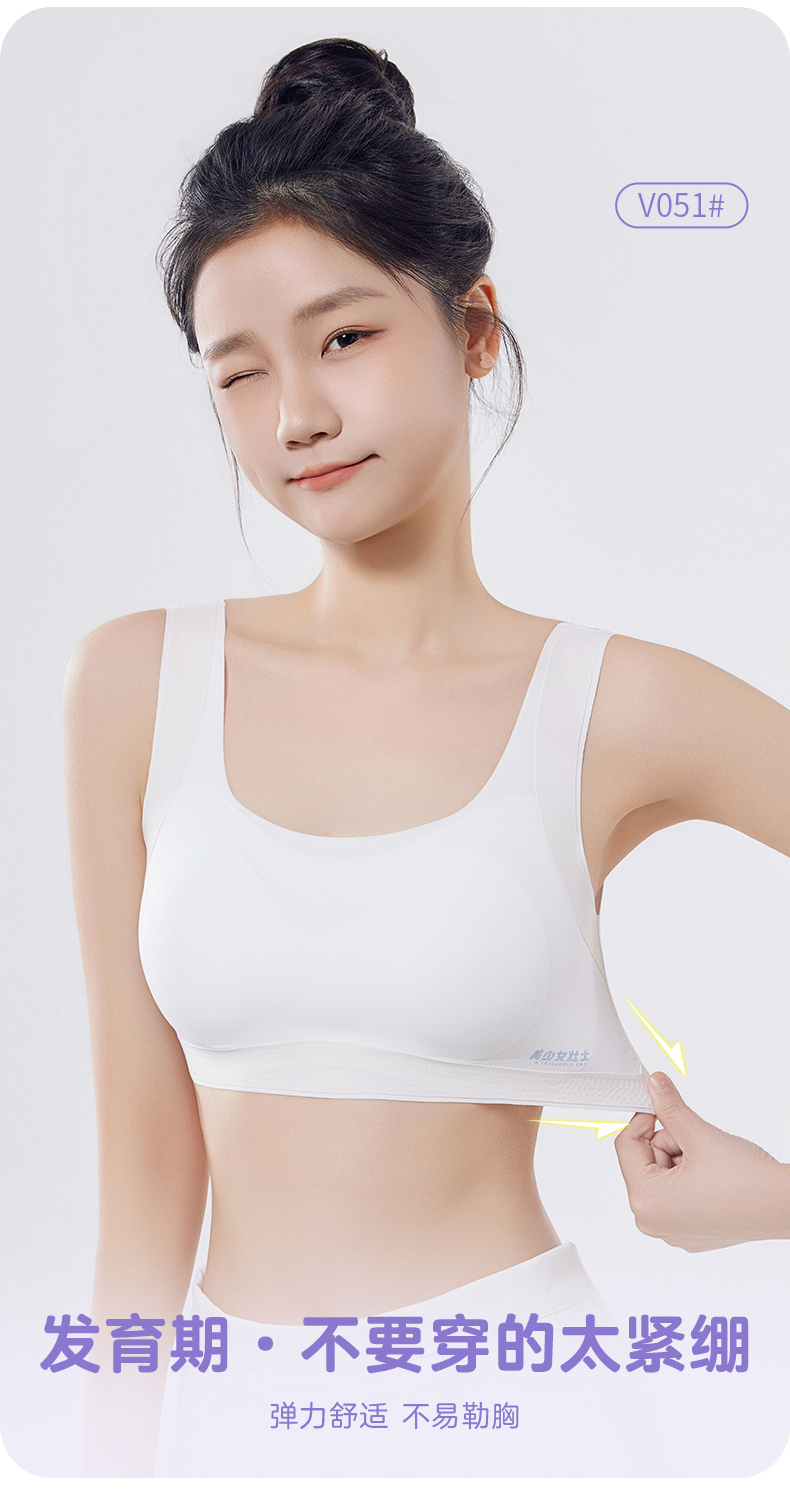 女士少女文胸无痕二三阶段渐变下围全固定杯少女Bra运动防震少女背心V050/V051/V057