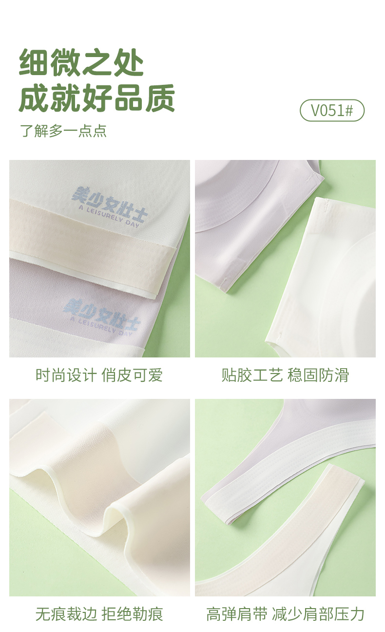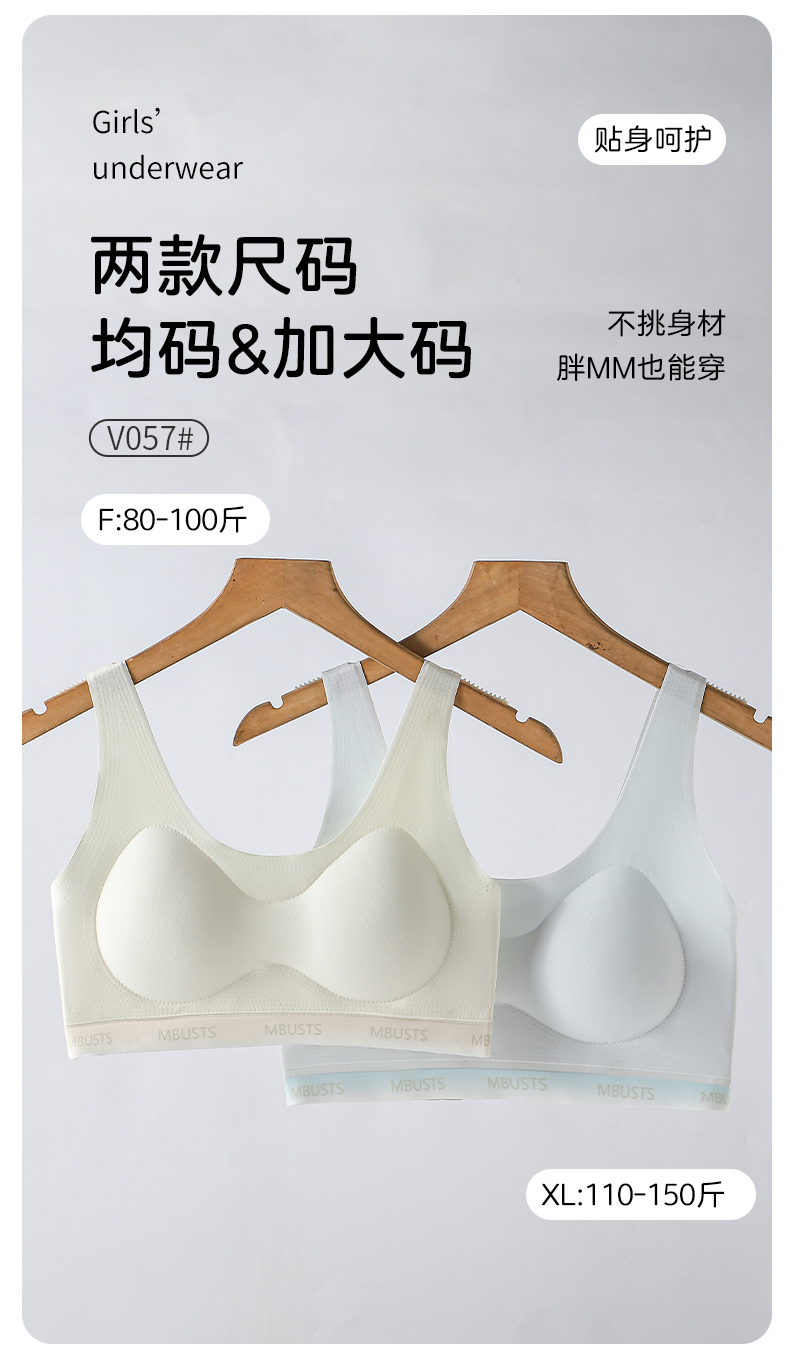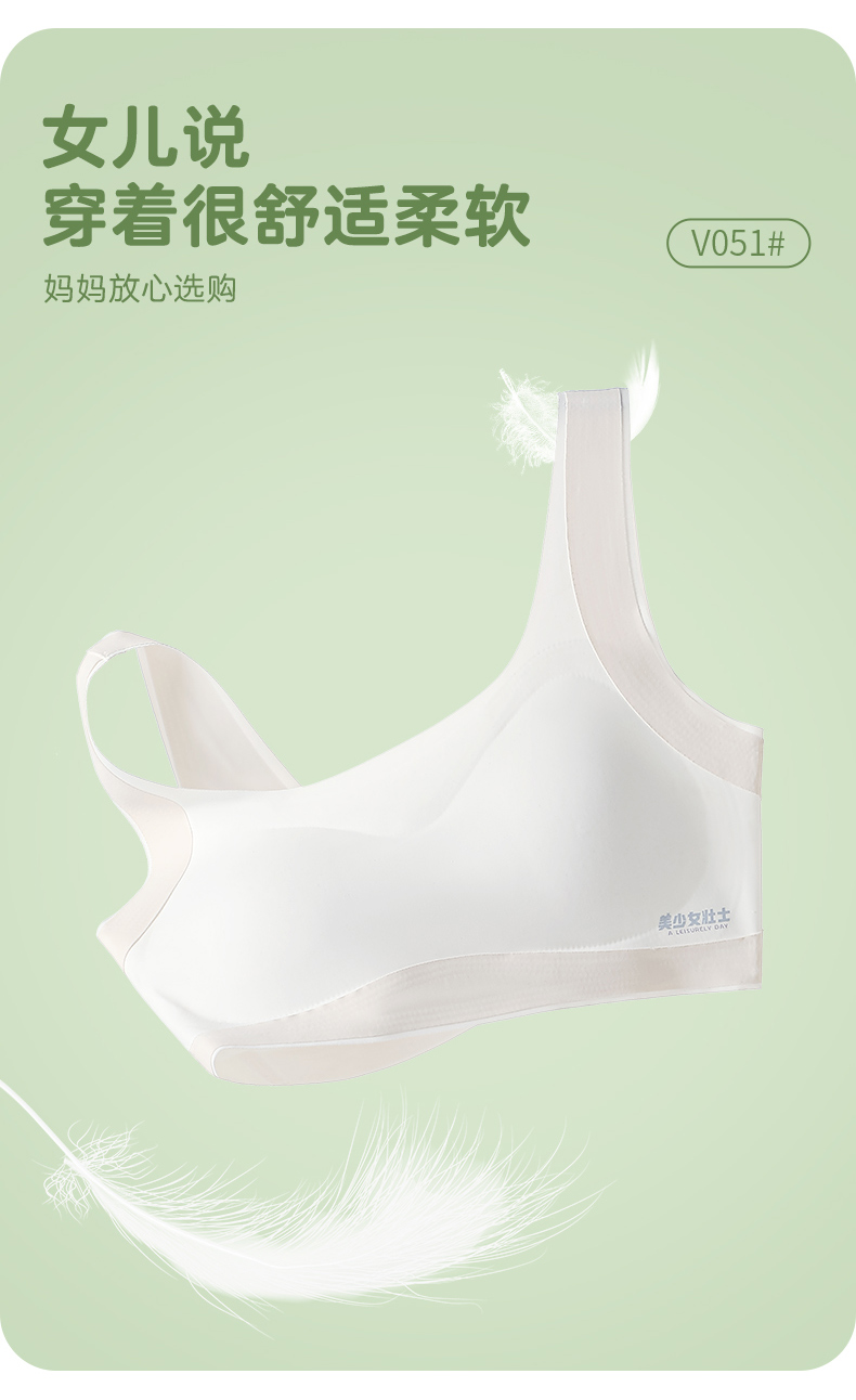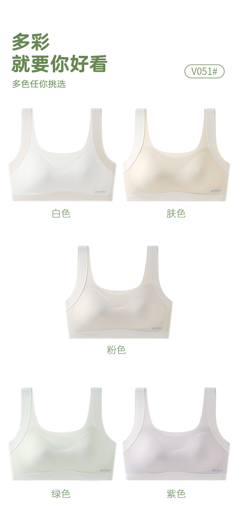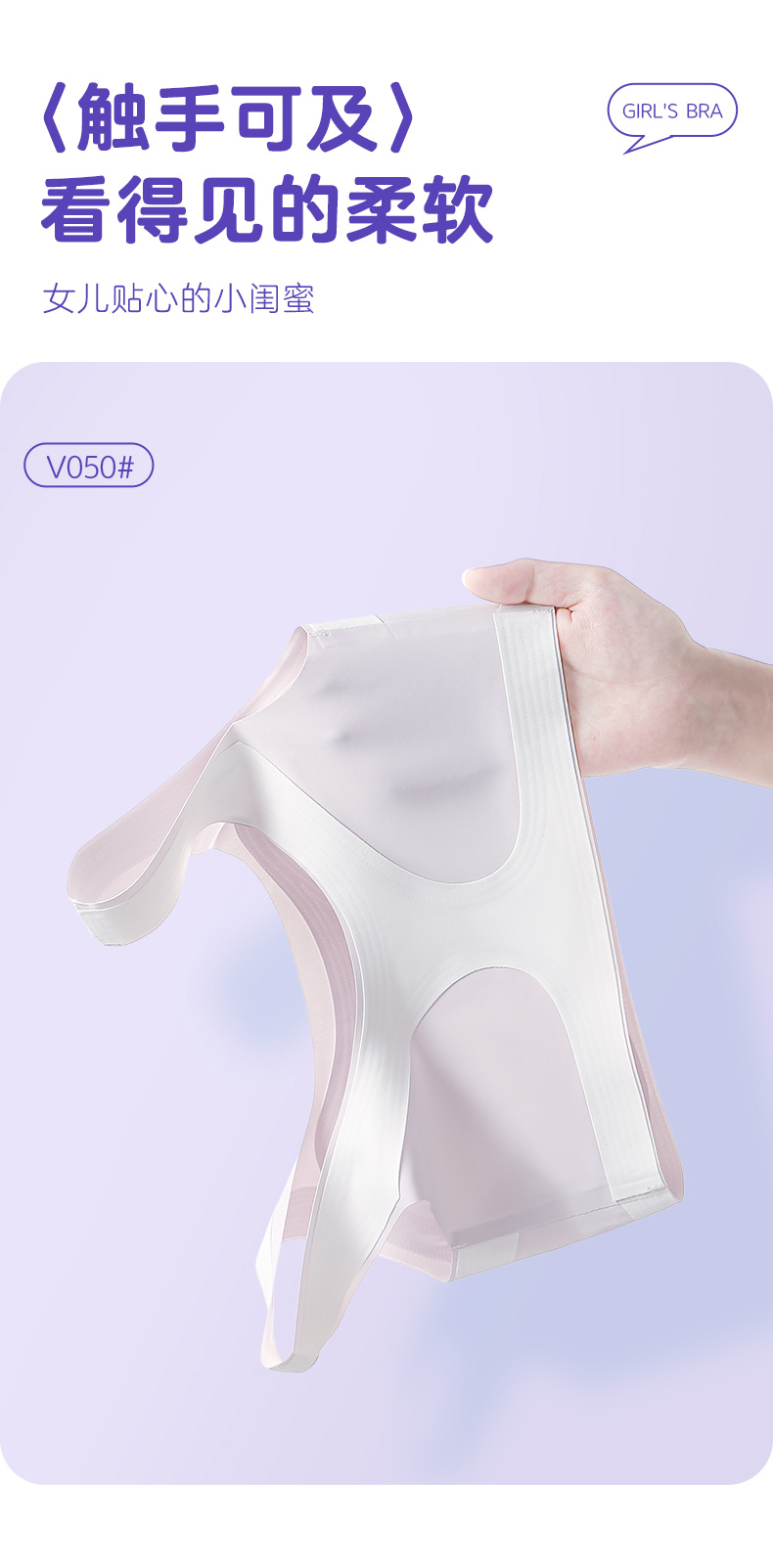 女士少女文胸无痕二三阶段渐变下围全固定杯少女Bra运动防震少女背心V050/V051/V057